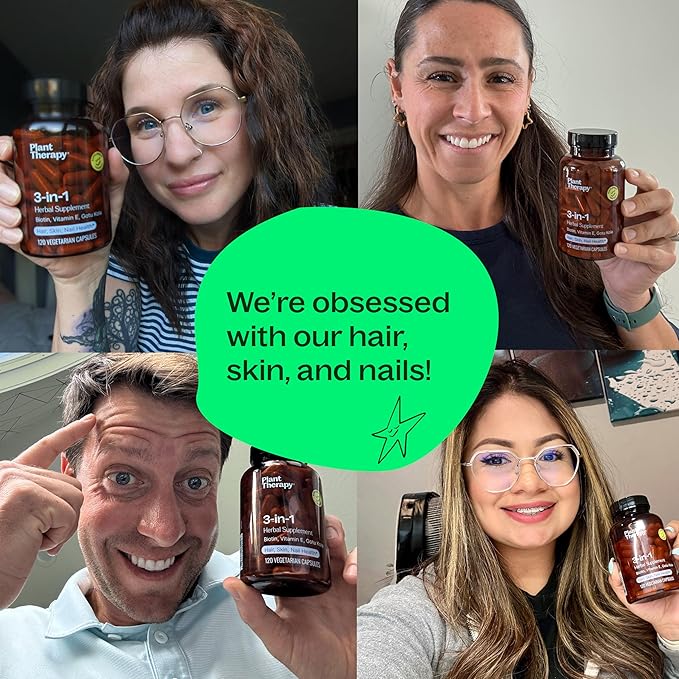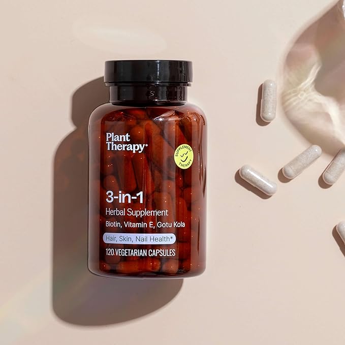 Plant Therapy 3-in-1 Biotin Capsules with Vitamin E & Gotu Kola Manufactured in USA 4 Month Supply Supports Radiant Skin, Hair Growth and Strong Nails Supplements for Women 120 Vegetarian Capsule