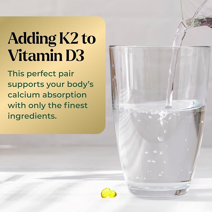 - Support Bones & Joints: Our Vitamin D3 K2 supplement supports teeth, bones, and joints; Vitamin D with K2 works together to help direct calcium to where it’s needed most, the bones; K2 Vitamin D for maximum absorption for optimal health support