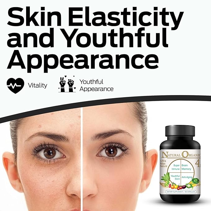 Ultra Max Natural Organic 4 in 1 Brain Supplements for Memory and Focus, Immune Support Anti-Aging Dietary Supplements