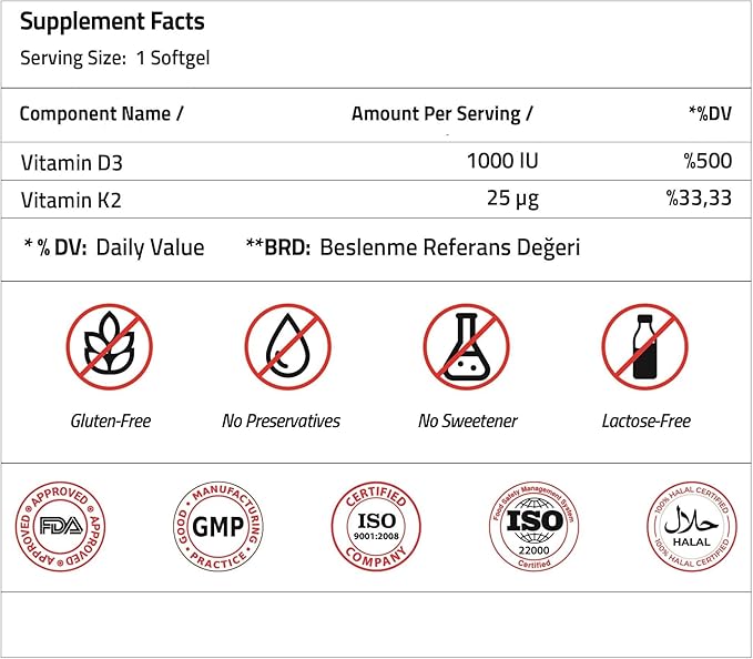 - Non-GMO, Gluten-Free, & Premium Quality: Our Vitamin D3 + K2 supplement is made with high-quality, non-GMO ingredients and is free from gluten, artificial additives, and preservatives, ensuring a clean and effective formula.