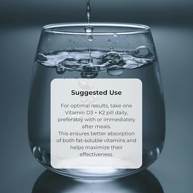 - Supports Bone Health & Calcium Absorption: Vitamin D3 helps increase calcium absorption, while Vitamin K2 ensures proper calcium utilization, directing it to bones and teeth instead of arteries or soft tissues.