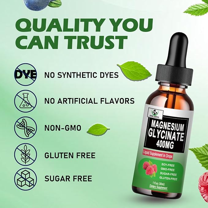 - THE POWER OF PURE MAGNESIUM GLYCINATE: Vita Letuo Magnesium Glycinate Liquid Drops with No Additives – Just Clean Magnesium! Experience the benefits of our pure 400mg Magnesium Glycinate drops, formulated without any additional ingredients. Supports muscle relaxation, promotes better sleep, and contributes to overall health and well-being. Trust in the purity and effectiveness of our liquid magnesium supplement to meet your daily magnesium needs.