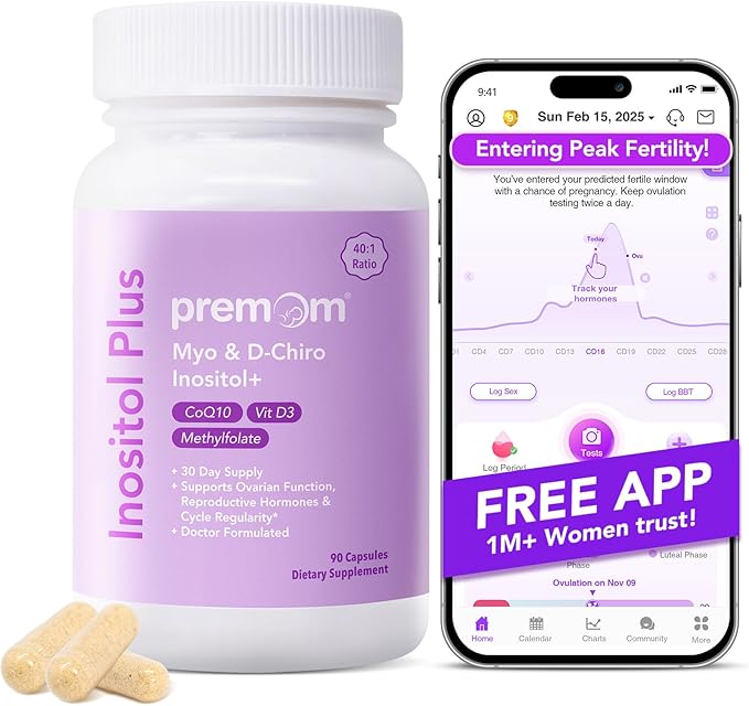 Premom Inositol Plus - 2000mg Myo-Inositol & 50mg D-Chiro Inositol, CoQ10, Folate & Vitamin D3-40:1 Ratio - Supports Hormonal Balance, Ovarian & Reproductive Health - 30 Day Supply