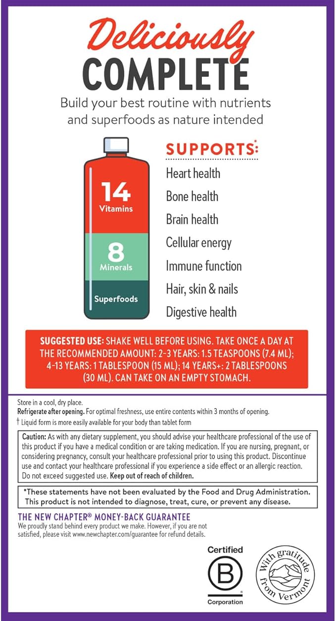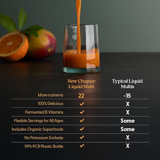 New Chapter Liquid Multivitamin + Mineral Supplement for Whole-Body Benefits, 100% Delicious Multivitamin for Adults, Teens & Kids 2+, Ready to Absorb Faster, Orange Mango Flavored, 30 oz