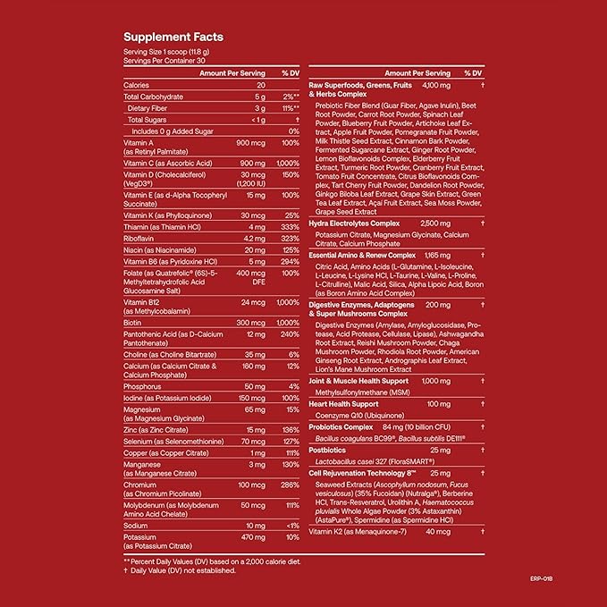 Daily Ultimate Essentials All-in-1 Multivitamin Supplement, 92 Nutrient Rich Ingredients CoQ10, Probiotics, Vitamins, Greens, GF, Acai Mixed Berry (30 Servings, Refill Pouch - Scoop NOT Included)