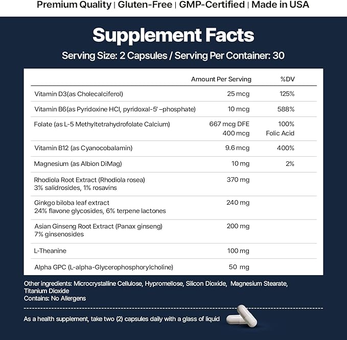 - [Convenient & Easy to Use] Take just 2 capsules daily with a light meal to fuel your brain health and maintain optimal mental performance.*