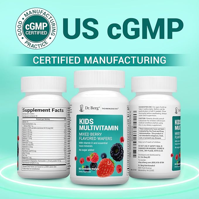 - ๐๐จ๐ ๐ ๐๐๐ฆ ๐๐ฅ๐ ๐ข๐ฉ๐๐ฅ๐ฅ๐๐ง๐๐ - Our kids multivitamin comes with 60 candy-like wafers with a delicious mixed berry natural flavor that isn't sweetened with unwanted sugars. Our exclusive formula has over 20 high-quality nutrients you won't find anywhere else. 30 day supply for children 4 and up.