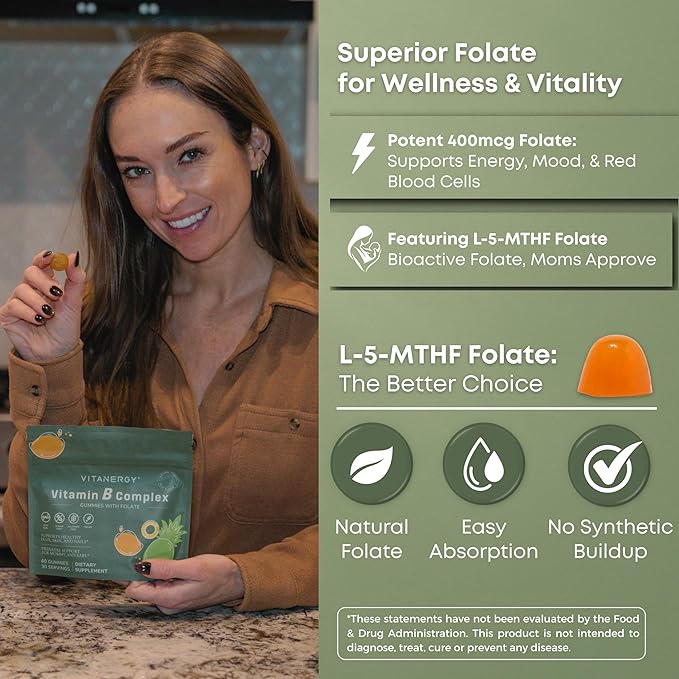 - Essential B-Complex for Women: Includes 7 B vitamins to support energy metabolism, maintain healthy hair, skin, and nails, and contribute to cognitive and immune function—featuring Folate, Biotin, B6, and B12 for everyday wellness.
