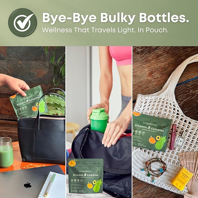 Tropical B Complex Gummies for Women – Sugar-Free, Vegan, Non-GMO – 7 B Vitamins + Iron, Energy & Immune Support – Portable Pouch, Made in USA, 60 Count