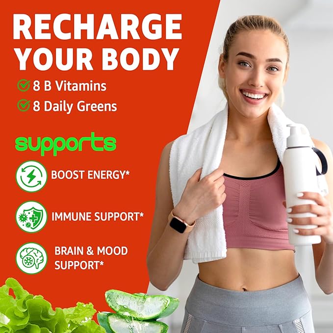 - Energy, Immunity & Brain Health: Whether you're managing a busy household, frequent meetings or business trips, or working out, these B complex vitamins for women & men gummies will keep you energized. Packed with all 8 B vitamins, plus vitamin C, zinc & 8 organic greens, they help you convert food into energy for healthy energy levels & immunity, and overall vitality—helping you take on daily challenges with ease. Enjoy a delicious, tooth-friendly treat that fuels your well-being!