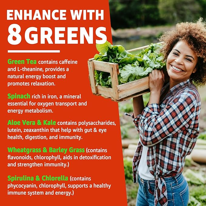 - Enhanced with 8 Organic Greens: These b vitamins complex gummies are infused with a powerful blend of 8 daily greens—green tea, spinach, aloe vera, spirulina, wheatgrass, chlorella, kale, and barley grass. They work synergistically with b complex vitamins to support immunity, energy, digestion, and overall vitality. It's like a symphony of nutrients that work together to keep you at your best. A perfect boost for your busy lifestyles!