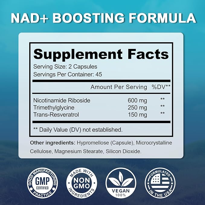 - 3-IN-1 SYNERGY FOR NAD+ – Each capsule delivers a powerful trio: NR to support NAD+ production, Trans-Resveratrol for antioxidant protection, and TMG for methylation balance. Together, they work to promote cellular health, reduce oxidative stress, support metabolic balance.