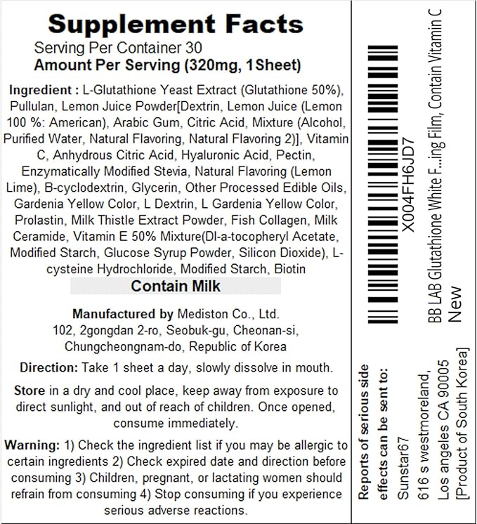 - Premium Antioxidant Formula: Each glutathione film contains 130 mg of concentrated Glutathione, known for its powerful antioxidant properties + 20 mg of Vitamin C and extra 10mg Hyaluronic Acid