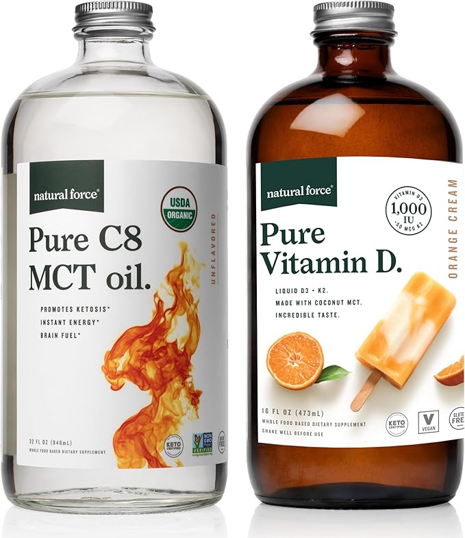 Natural Force Pure Vitamin D Orange Cream, 16 fl oz Organic Pure C8 MCT Oil 32 oz