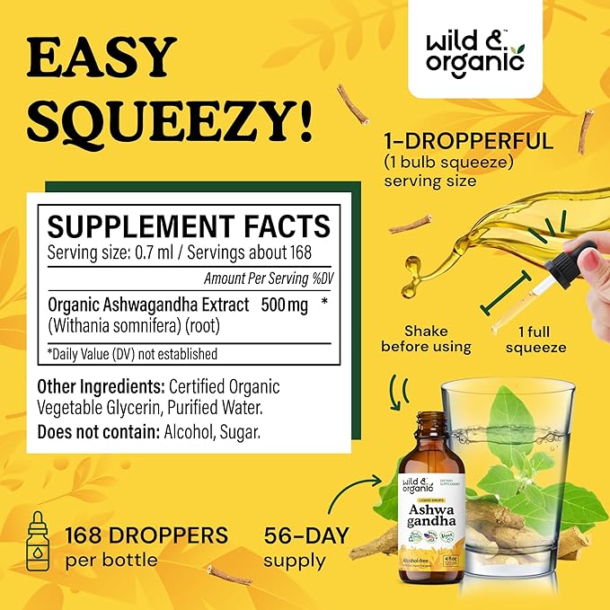 - Relaxation Support: Each serving of ashwagandha drops contains 500 mg of ashwagandha root extract to support relaxation and peace of mind.