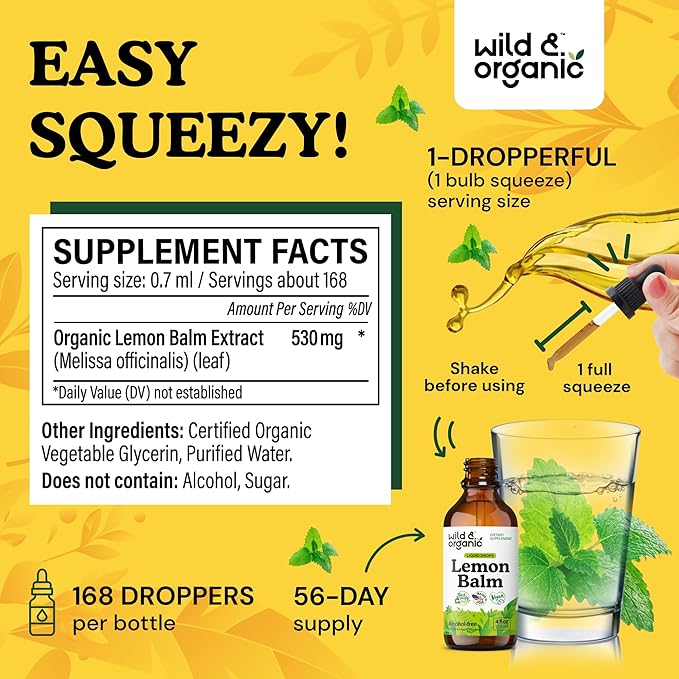 - Relaxation Support: Each serving of Wild & Organic lemon balm tincture contains 530 mg of lemon balm extract to support relaxation and positive mood.