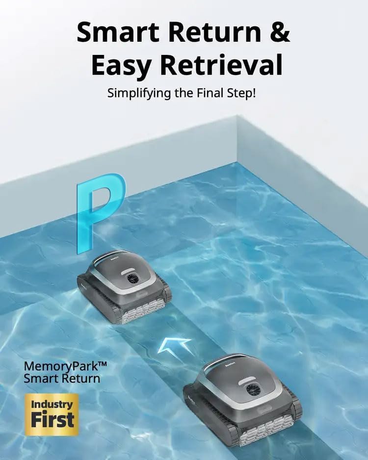 - 【Intelligent Path Optimization & Advanced Navigation】Equipped with a quad-core 1.8GHz CPU, 15 high-precision sensors, and AI-driven algorithms, this robotic pool cleaner meticulously maps your pool (above or in-ground) and dynamically optimizes cleaning paths for maximum efficiency. Combined with SonicSense obstacle avoidance, it navigates effortlessly around complex pool layouts without missing a spot.