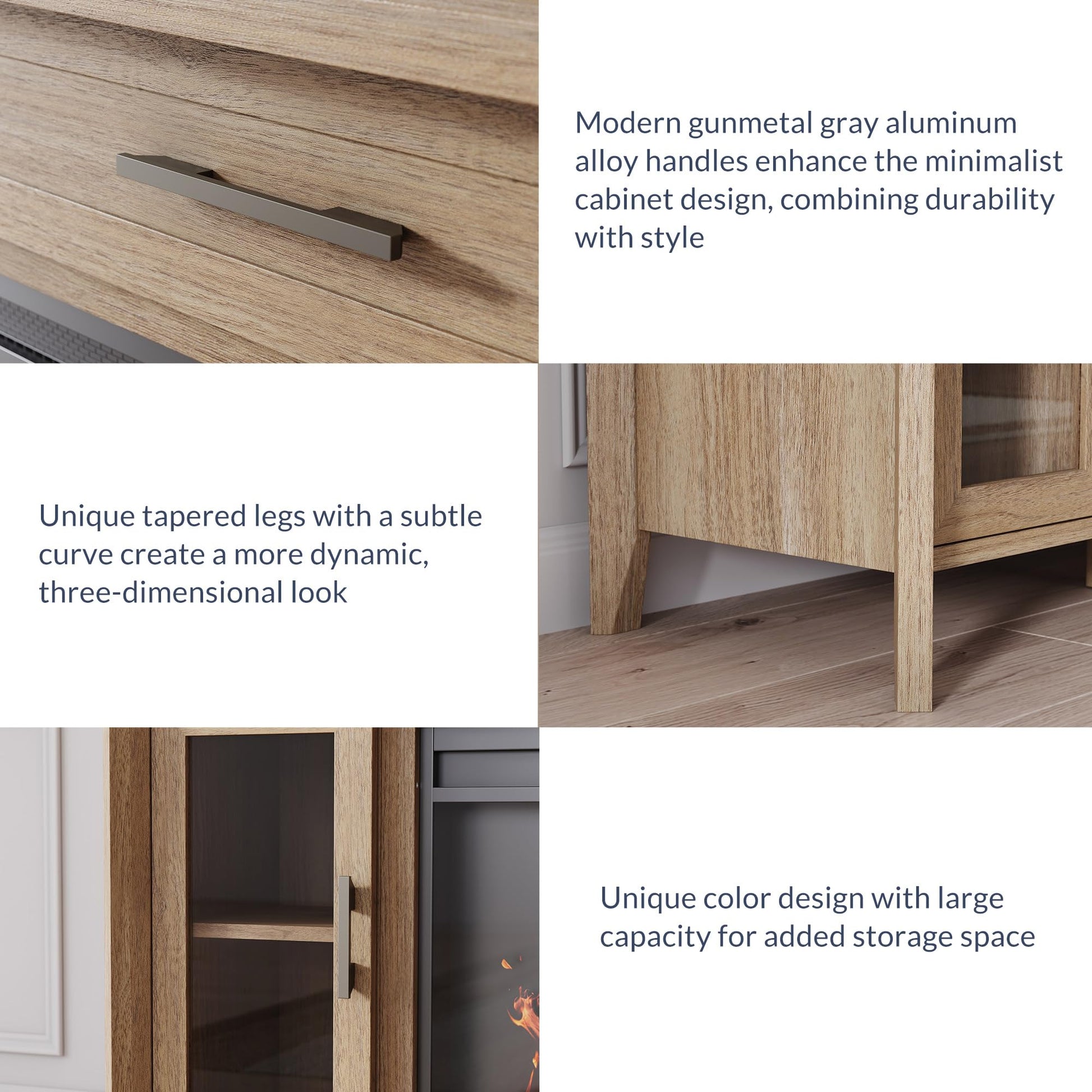 - Unique Detail Design: The rustic brown finish creates a cozy atmosphere, while gunmetal gray aluminum alloy handles add a modern touch and durability. The tapered leg design enhances stability and safety, making this entertainment center with storage and drawers both visually appealing and functional.