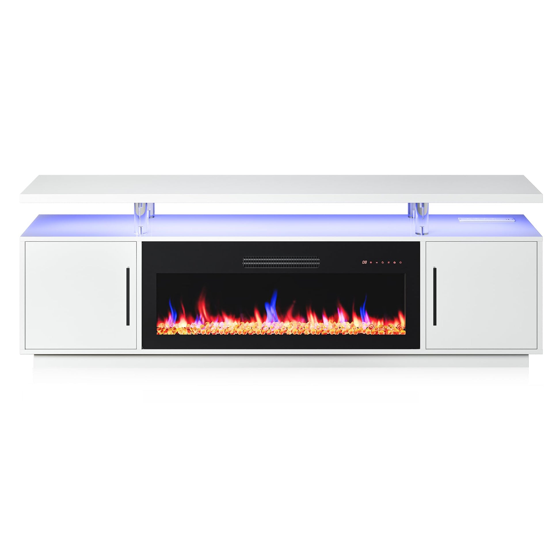 - [Multipurpose Design] This piece serves as a 79' TV stand, a media console table, and an electric fireplace. It reduces the number of furniture needed and saves space. It's made from high-quality manufactured wood with a premium high-gloss finish. It's available in black and white colors.