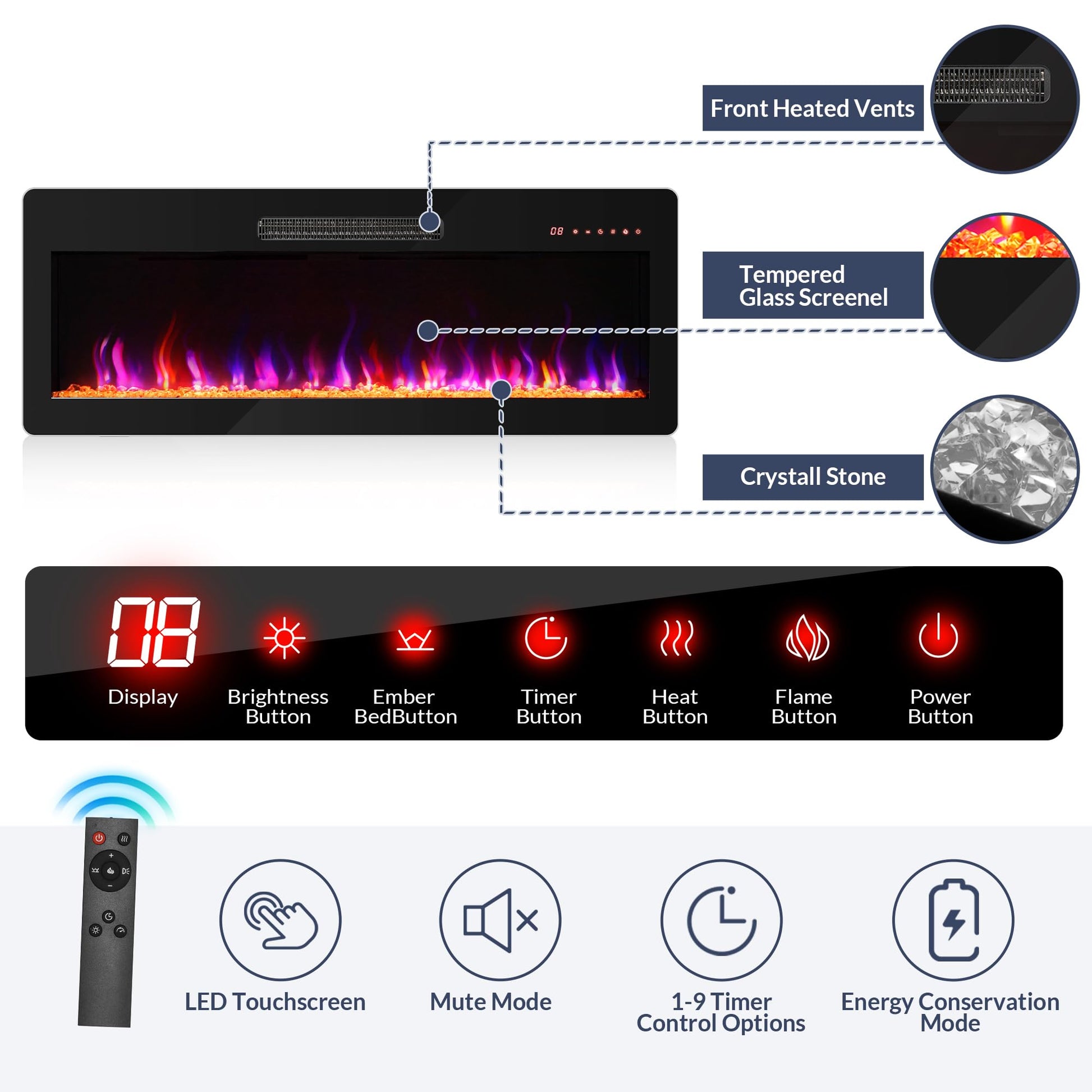- [42 Inch Electric Fireplace] The 42' electric fireplace adds a cozy, stylish element to your living space. Dazzle your company with 5 different flame speed levels for total control of your desired mood. The realistic and natural-looking flames turn any room into a sanctuary.