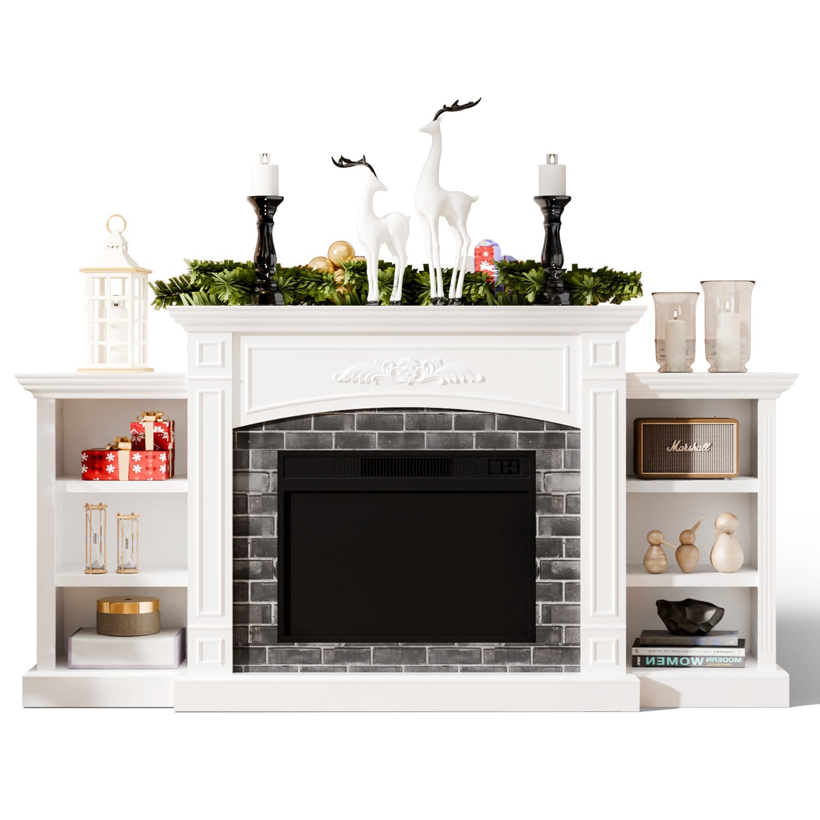 Details: The Bonnlo 80' Electric Fireplace with Mantel brings a blend of elegance and comfort to your living room or bedroom, offering a multifunctional media console that supports TVs up to 90 inches. With a spacious size of 79.92'W x 16.14'D x 41.73'H, this entertainment center is designed to be the focal point of your space. At its heart is a 24.17'W x 5.08'D x 17.52'H electric fireplace heater, featuring an adjustable temperature range from 62°F to 82°F and a convenient timer setting (0.5-8 hours) to personalize your comfort. Safety features like overheating protection and CSA certification provide peace of mind, allowing you to enjoy warmth and ambiance worry-free. Beyond just warmth, the console offers ample storage with adjustable shelves, making it easy to organize media accessories, books, and decorative items. Its stylish modern farmhouse design, complemented by a shined white finish, adds sophistication to any decor. The included remote control allows you to adjust the flame, heat, and timer from anywhere in the room for ultimate convenience. Assembly is made simple with straightforward instructions, and Bonnlo’s customer service team is ready to assist you with any questions. Make this durable and stylish fireplace TV stand the centerpiece of your home, offering warmth, organization, and lasting quality.