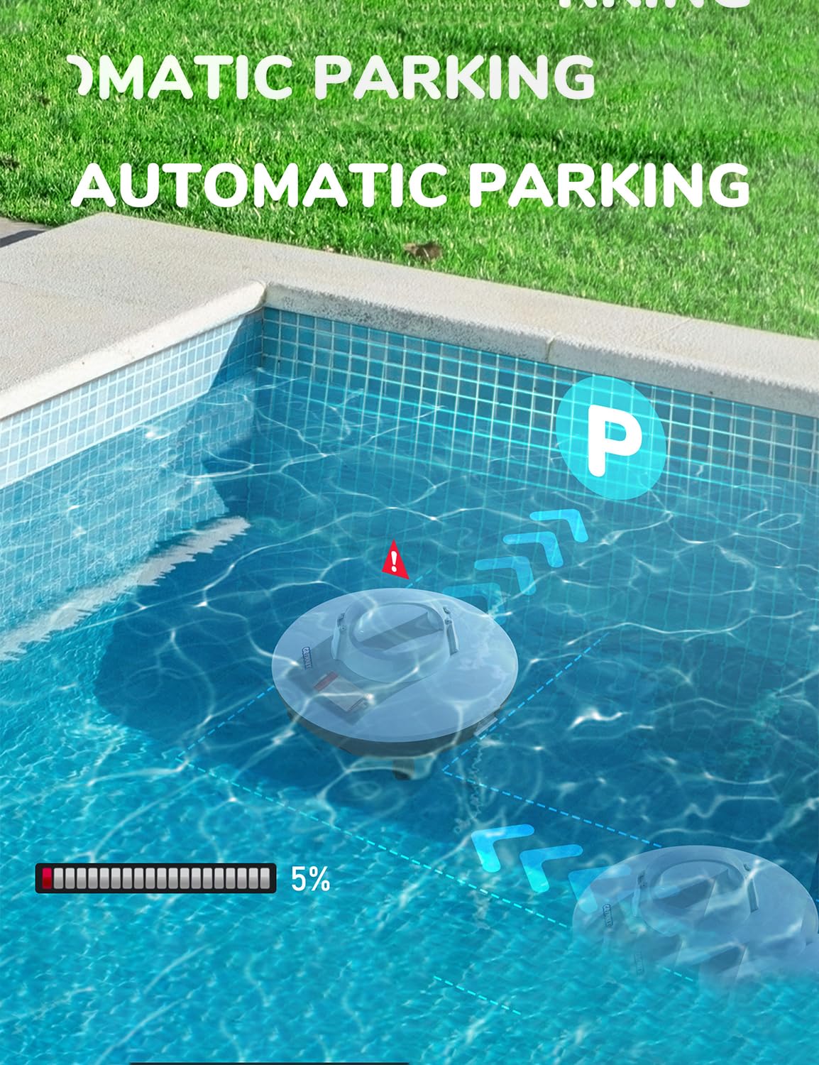 - 🦠【Automatic Self-Parking】The fully automatic in-ground pool vacuum uses smart technology to park itself. When the battery of the cordless pool robot is empty or at the end of its work cycle, it stops near the pool wall. You can simply use the supplied hook to lift it out of the water without getting it wet. Our pool robots are fast, efficient and clean your pool effortlessly.