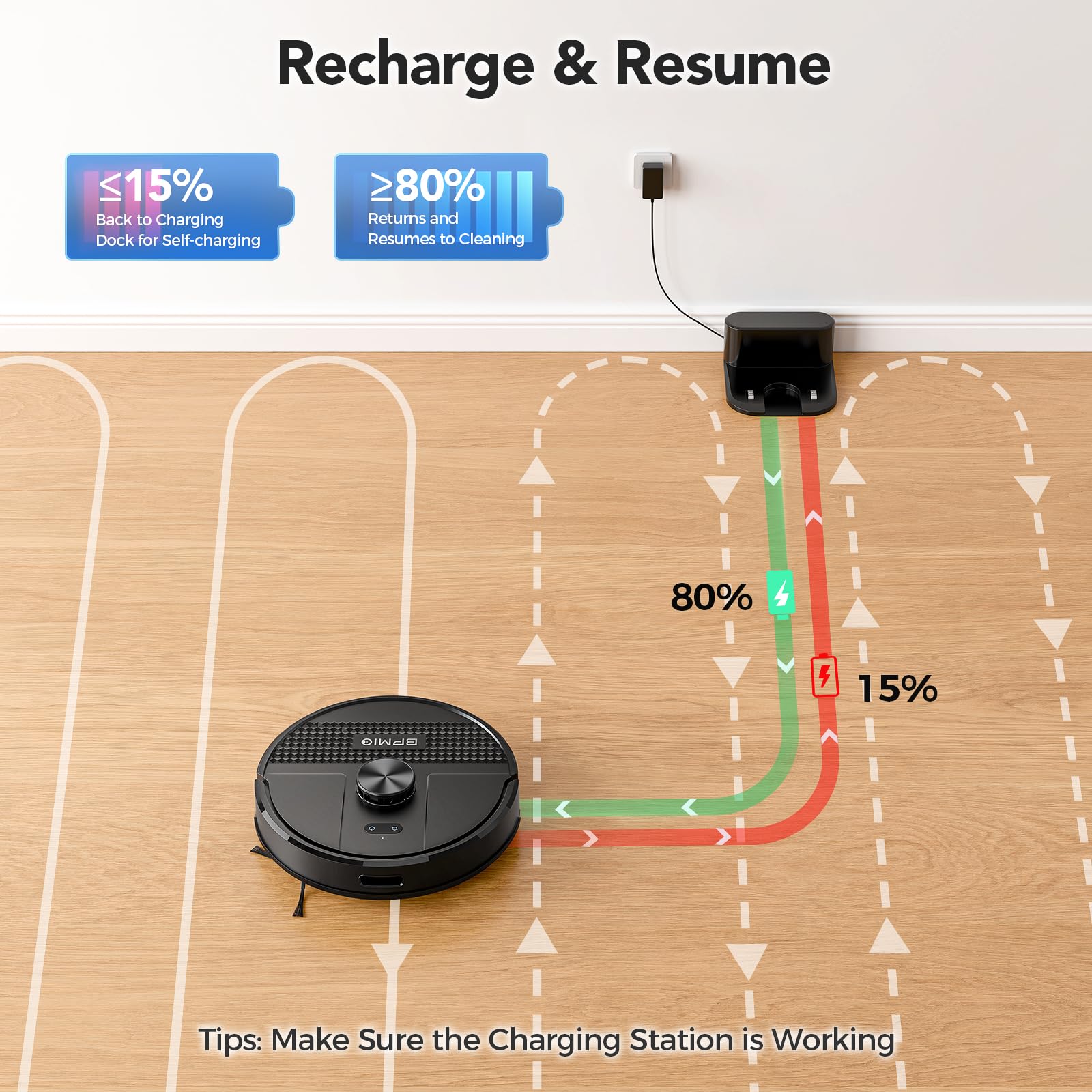 - ✨[ 145 Mins Long Runtime and Self-Charging Design ]: The larger battery capacity supports up to 145 minutes of use in low mode. If the battery drops below 15% during cleaning, it will intelligently return to charge and resume cleaning once the battery reaches 80%. With the use of the SLAM algorithm, the B12 charges precisely and quickly, ensuring uninterrupted cleaning performance.