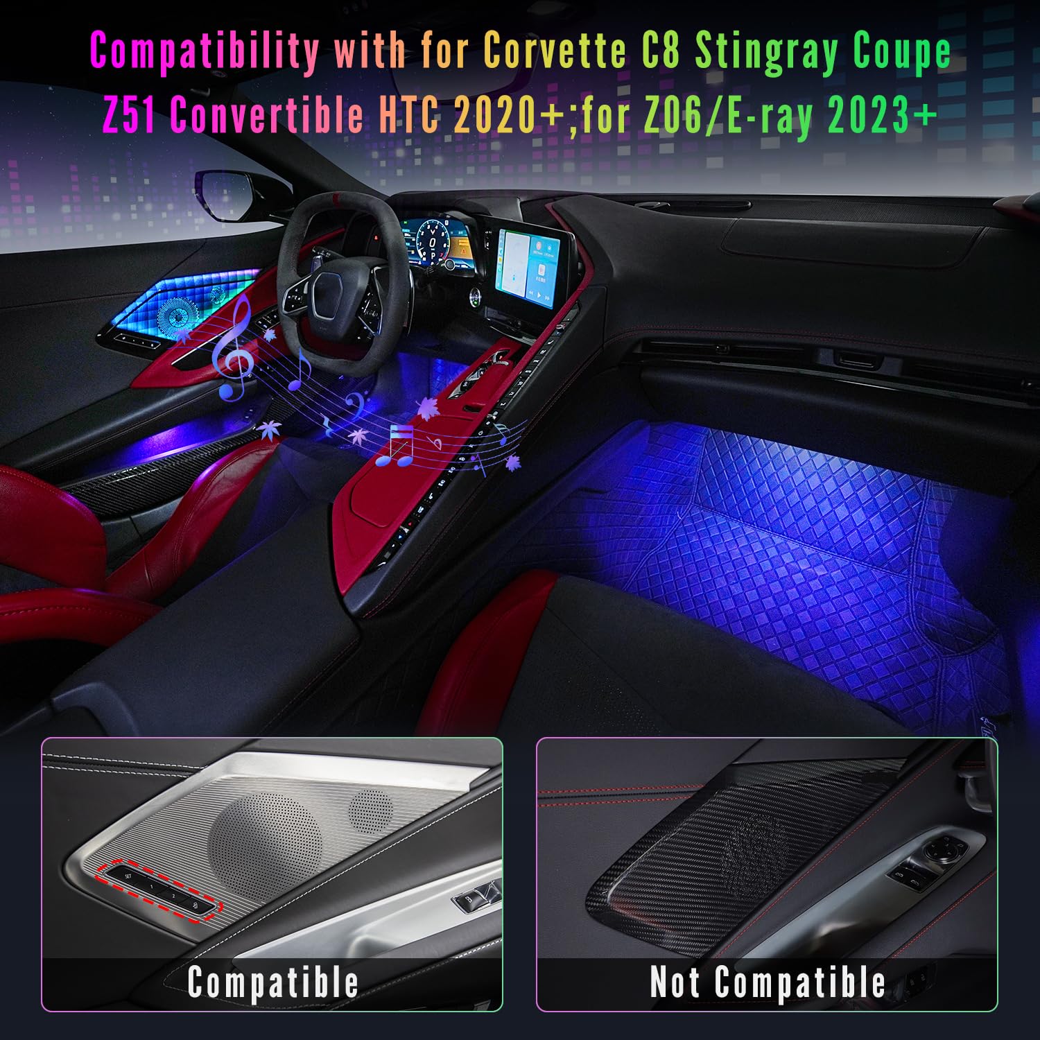 - Fitment:This ambient light assembly kit is perfectly compatible with for Corvette C8 Stingray Coupe Z51 Convertible HTC 2020 202 2022 2023 2024;compatible with for Z06/E-ray 2023 2024.Please note: This door side speaker cover replacement only for the covers with memory seat buttons. Not suitable for the speakers cover without holes.