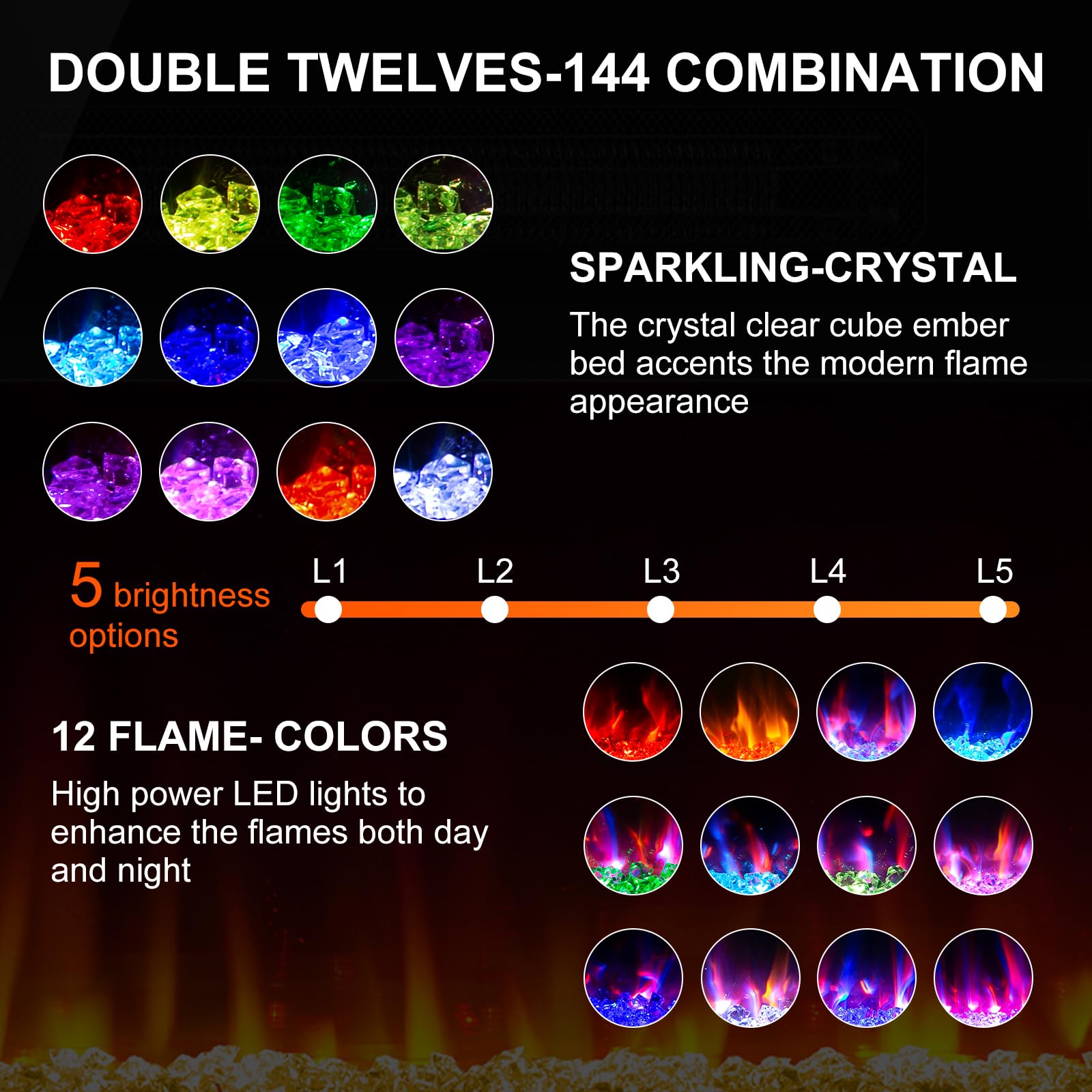 - 【Adjustable Flame】12 flame colors & 12 LED flame bed colors;5 flame speeds;5 flame brightness levels;0-8 hours timer control. You can customize the mood of your living space with a simple touch screen or a convenient remote control from across the room!