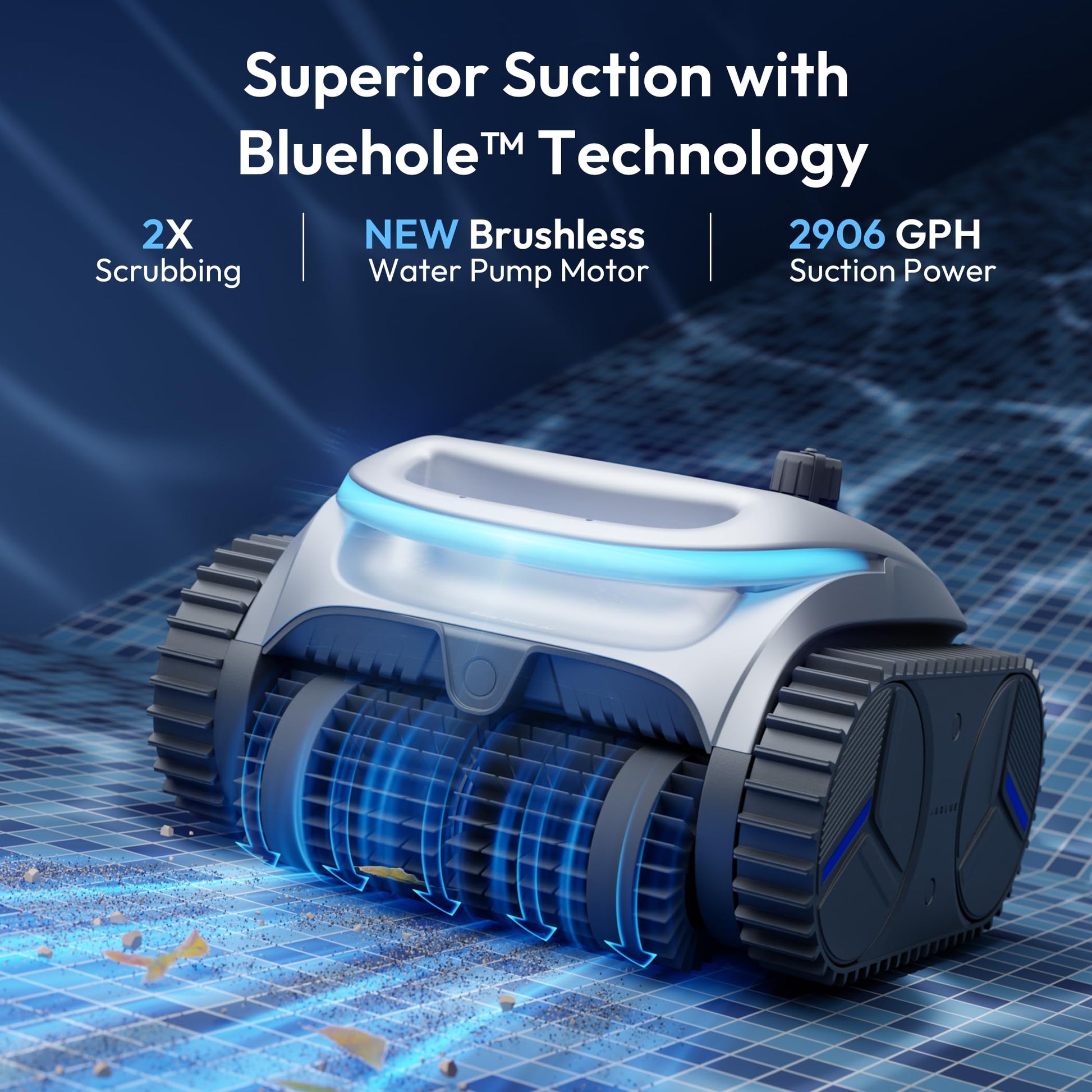 - Unmatched Suction & Hygienic Protection: Powered by Bublue's Bluehole Tech and a advanced brushless water pump motor, BuHybrid L6 delivers powerful suction, tackling dirt, sand, and leaves with ease. The built-in silver ion technology supports a fresher, cleaner pool environment.