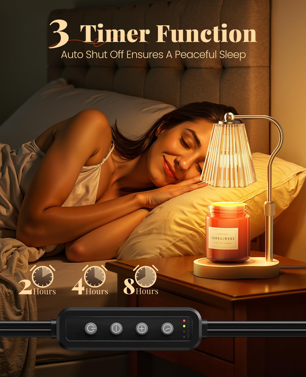 - 【3 Convenient Timer Settings】This candle warmer has a timing function. Three timer options for 2, 4, and 8 hours make the candle warmer easy to close. No more worries about forgetting to turn off the lamp, more safe to use