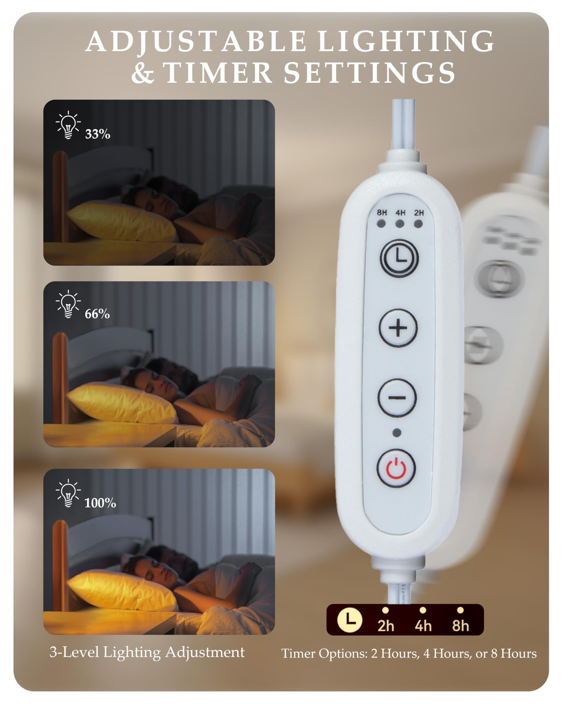 - CUSTOMIZABLE LIGHT AMBIENCE: Features three brightness levels with dimmer control so you can create the right mood for reading, relaxing, or adding warmth to your evening space