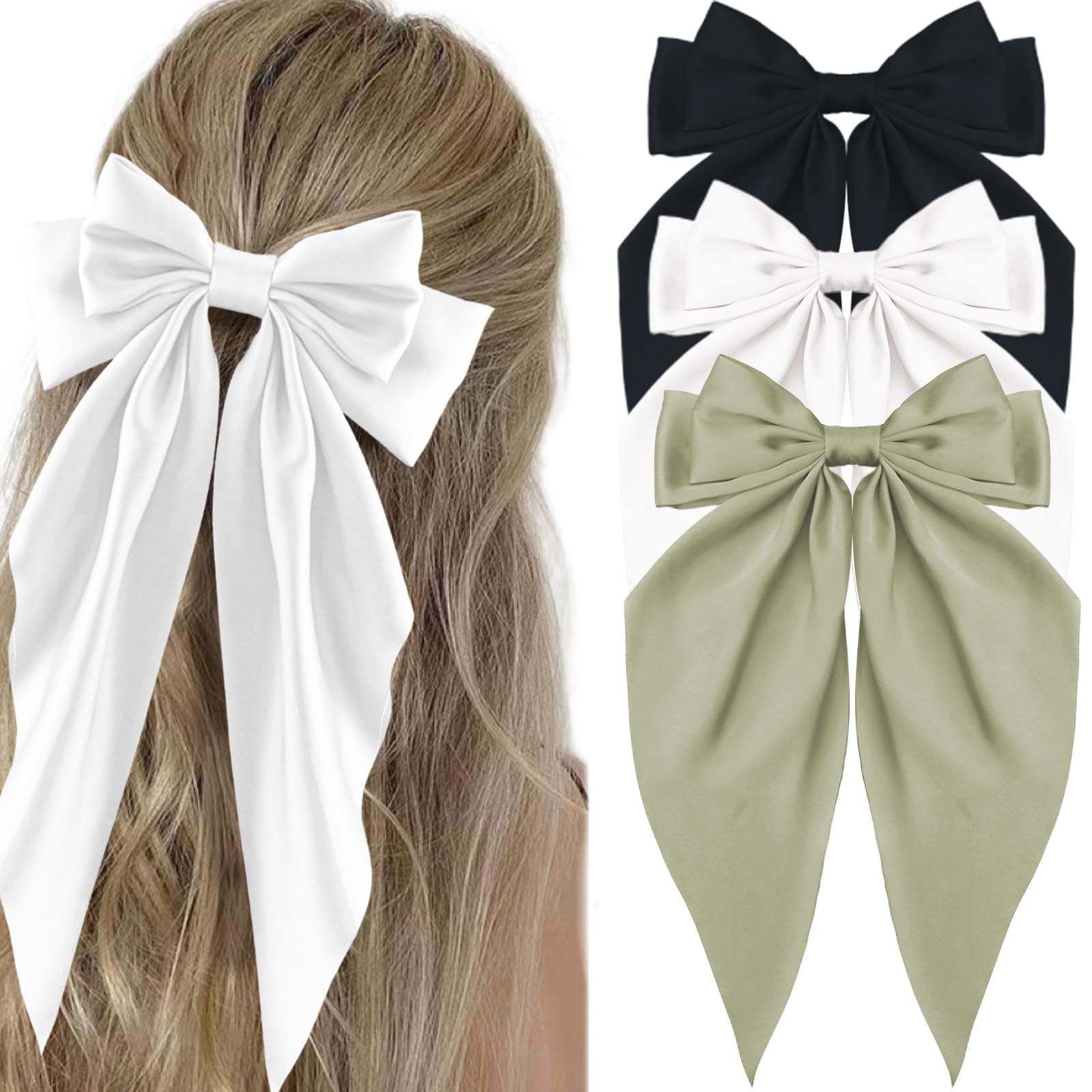 - 🦋 Quality Material: Made of silky satin fabric with long tail, soft and durable, glossy and elegant.Strong metal hair bow barrette can provides a secure hold, ensuring that your hair remains perfectly styled throughout the day.