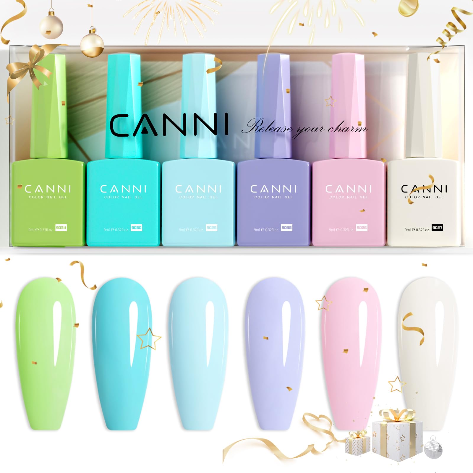 Canni 6Pcs 9Ml Hema-Free Gel Nail Polish Set- Green Blue Purple Pink Off-White Colors Gel Polish Kit, Soak Off Led Nail Gel Mani