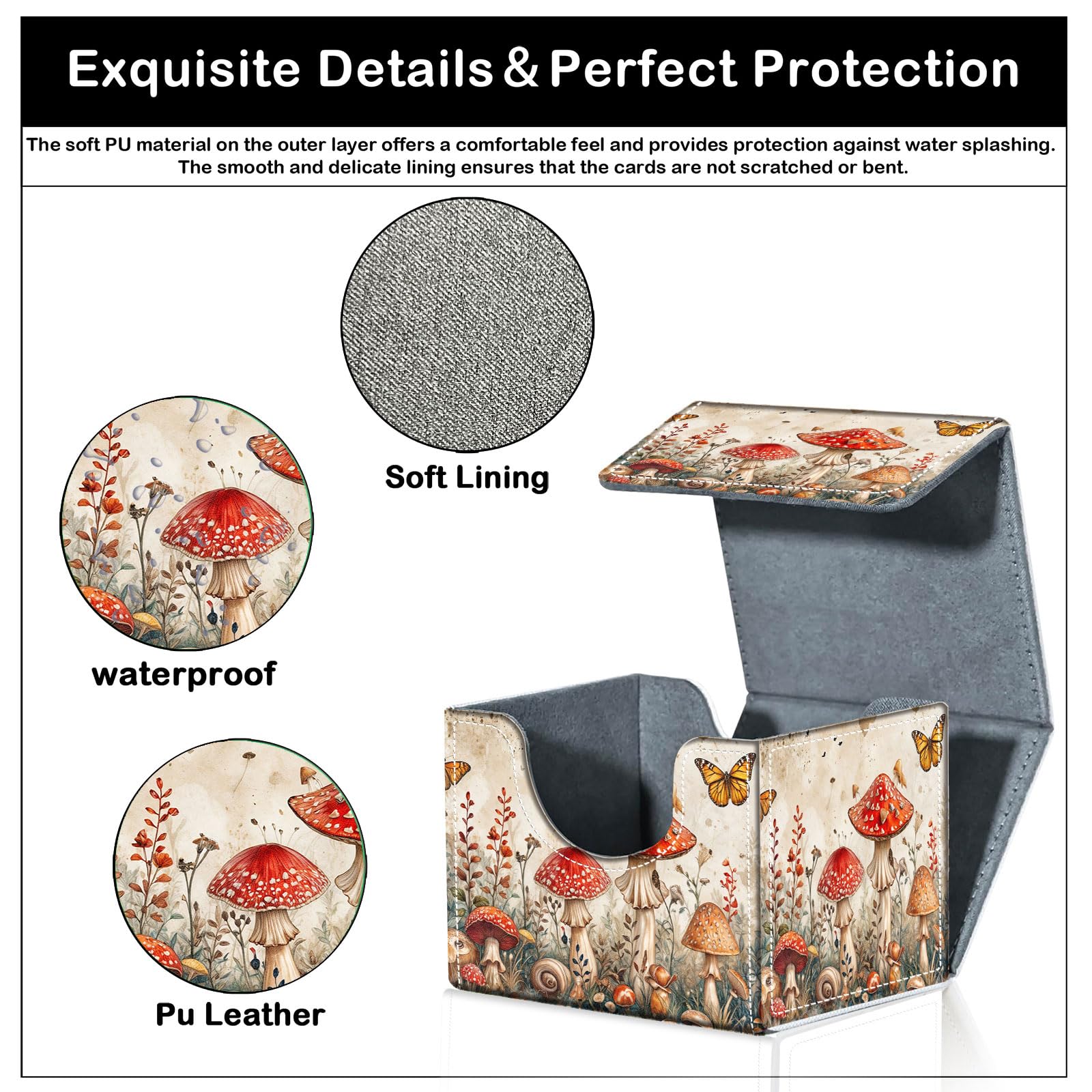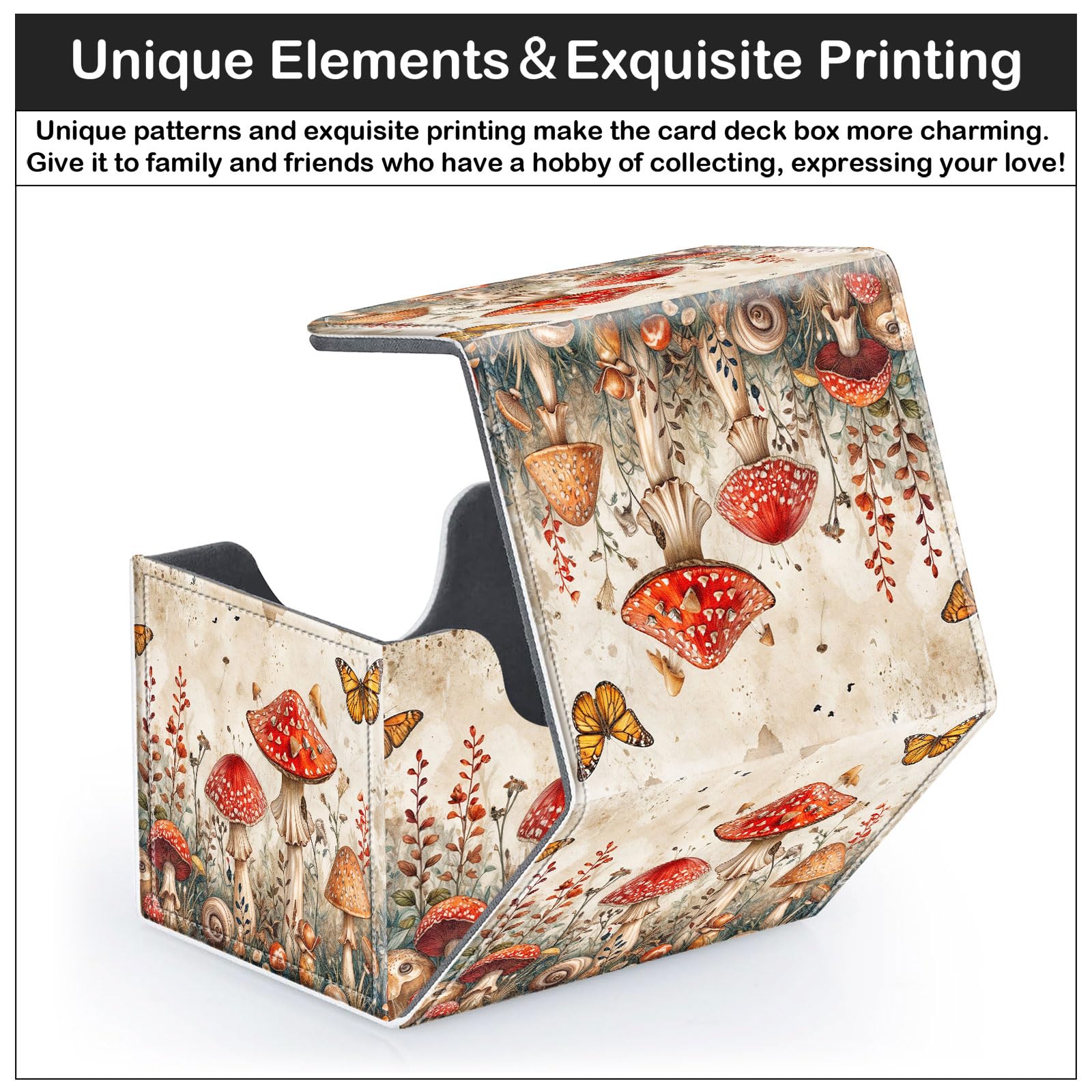 CAPAUNVDA Card Deck Box for MTG Trading Cards with Magnetic Closure,Premium Card Storage Box Case Cover for TCG CCG Magic Cards,Mushroom Butterfly Weed
