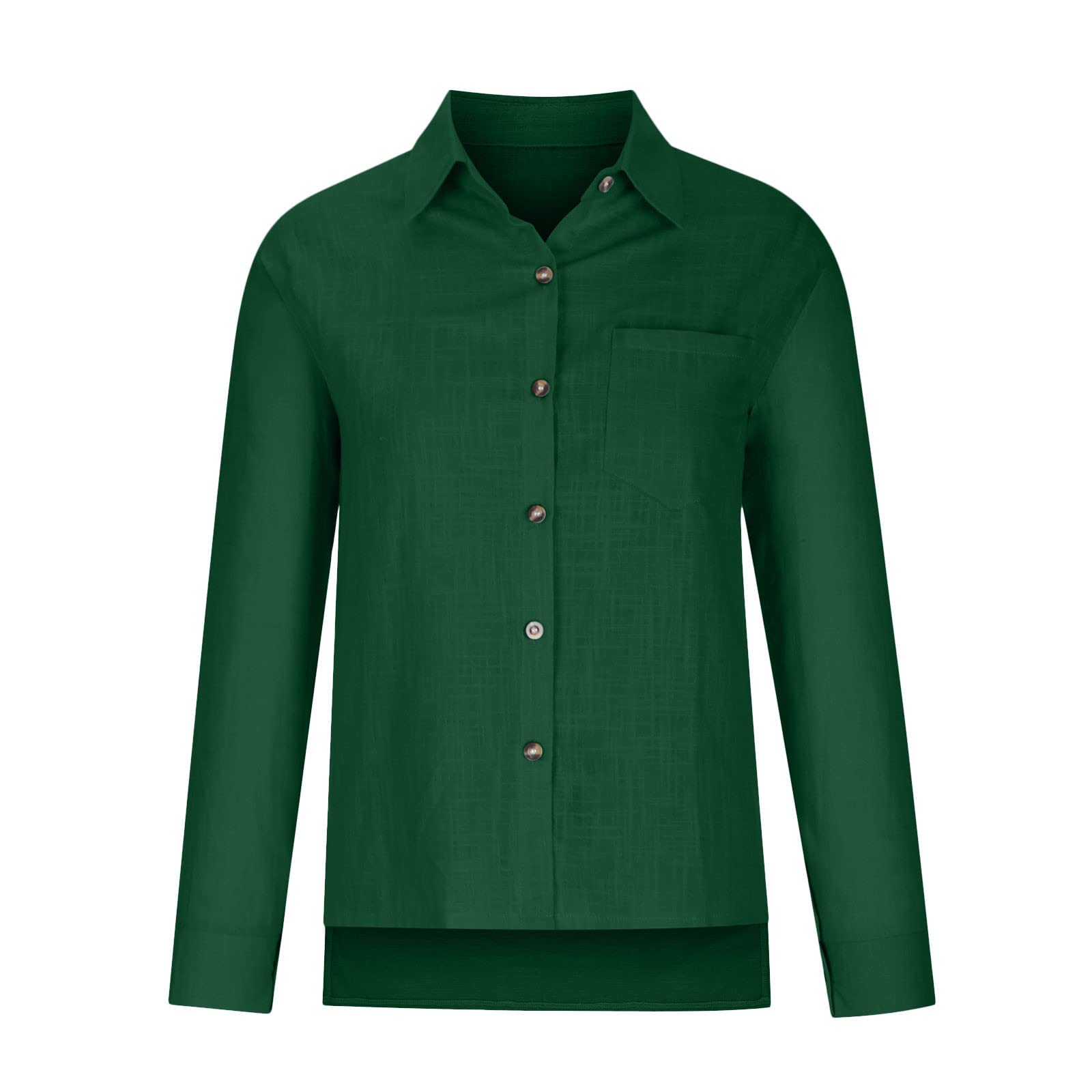 Cardigans for Women Trendy, Long Sleeve Shirts for Women Fall Cotton Linen Tops Blouses Casual Button Down T Shirts Lightweight Cardigans with Pocket Fashion 2024 Womens Fall Tops C-green