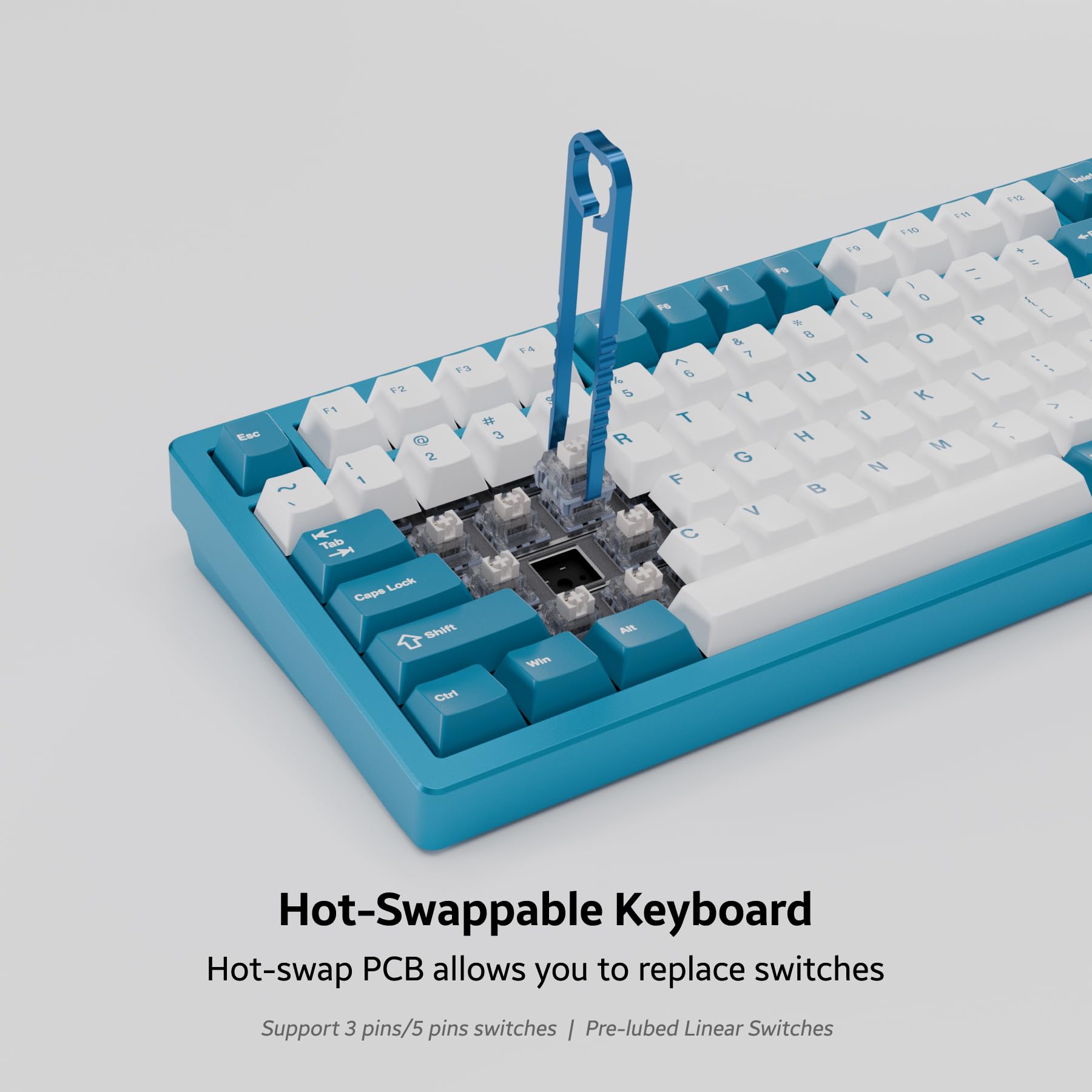 - Full Aluminum Alloy Case Gaming Keyboard: The mechanical keyboard wireless is made of CNC full aluminum case with anodization surface treatment, which has a delicate touch and texture, and the counterweighted backplate is made with an artistic pattern with a gradient effect