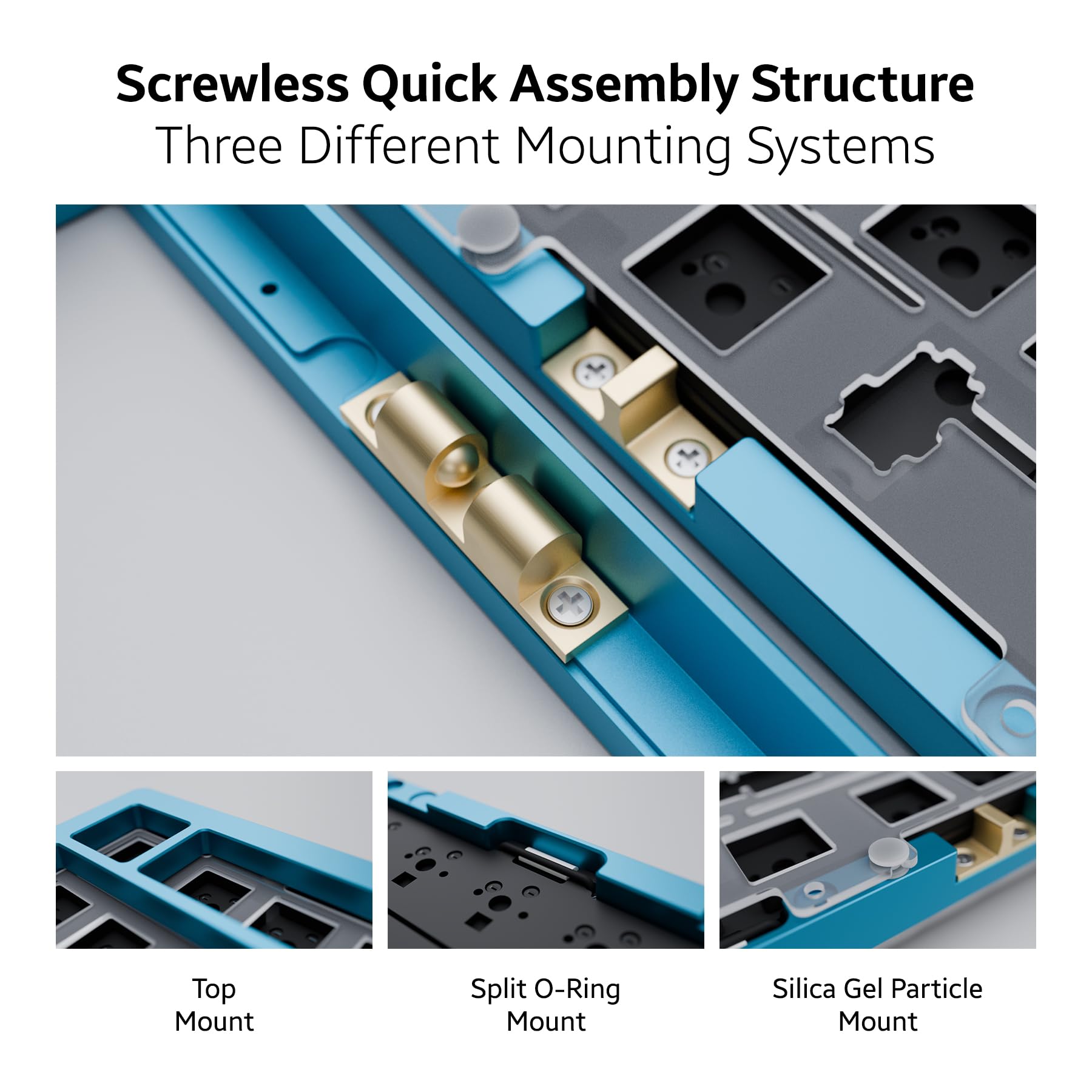 - Quickly Disassembled & 3 Mounting Systems: The ND75 keyboard adopts screwless quick assembly structure, using the ball catch system, Can be quickly and easily disassembled and assembled. 3 Mounting Systems: Split O-Ring Mounting, Silica Gel Particle Mounting, Top Mounting. 3 different mounting systems give you a new exciting experience, especially suitable for beginner keyboard enthusiasts, is an entry-level mechanical keyboard
