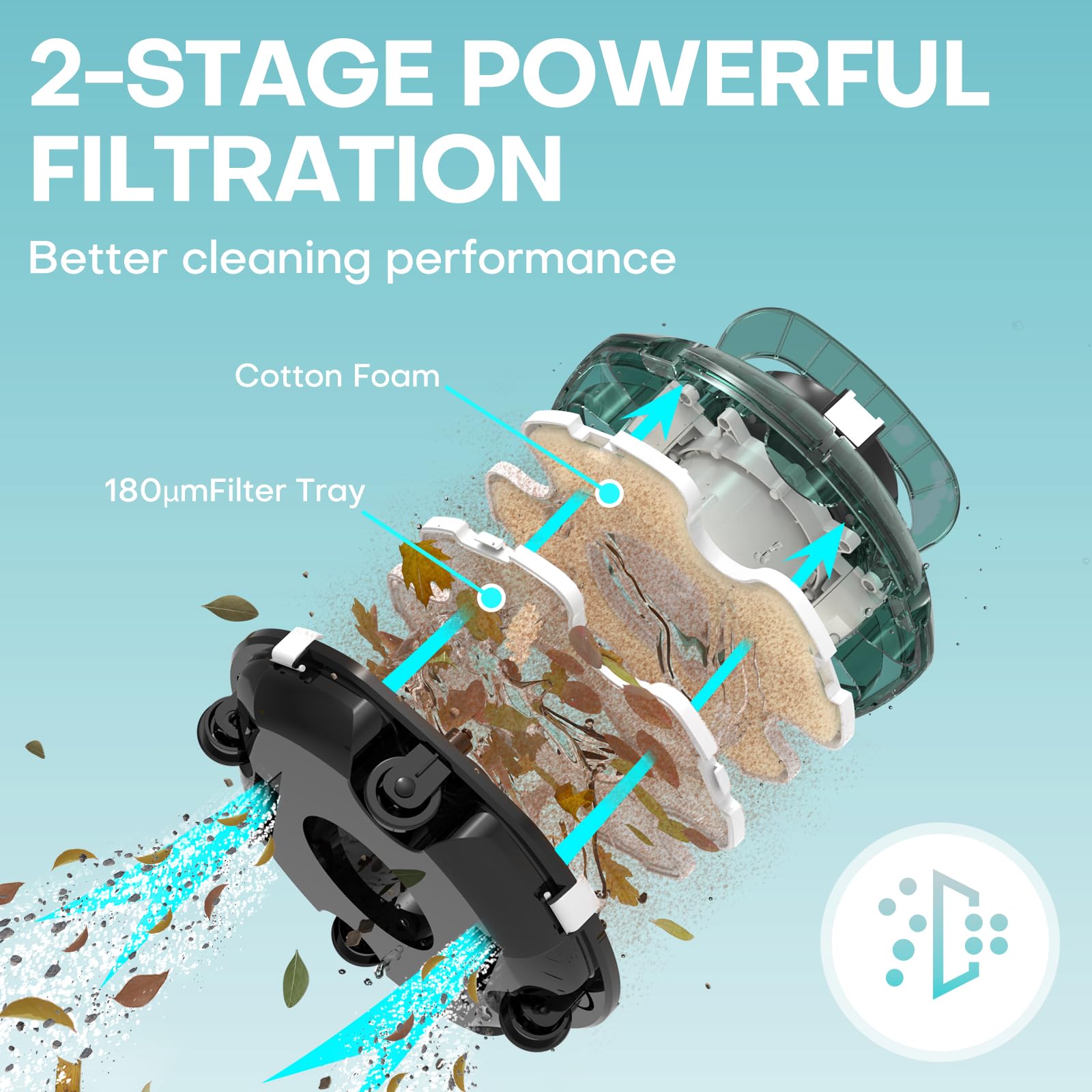 - 【Advanced Dual-Stage Filtration System】 This above-ground pool cleaner features a 180μm precision mesh filter paired with a multi-density foam layer, increasing filtration efficiency by 50% versus standard robots. Effortlessly traps everything from fine silt to leaves and sand, ensuring crystal-clear water with no debris left behind.