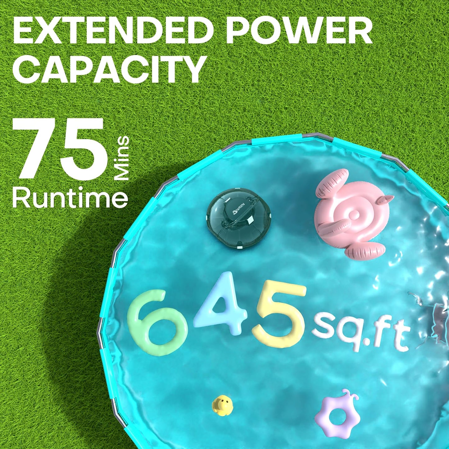 Cordless Robotic Pool Vacuum, Self-Parking Technology, Portable, Ideal for Above-Ground Flat Pool up to 645 Sq. Ft