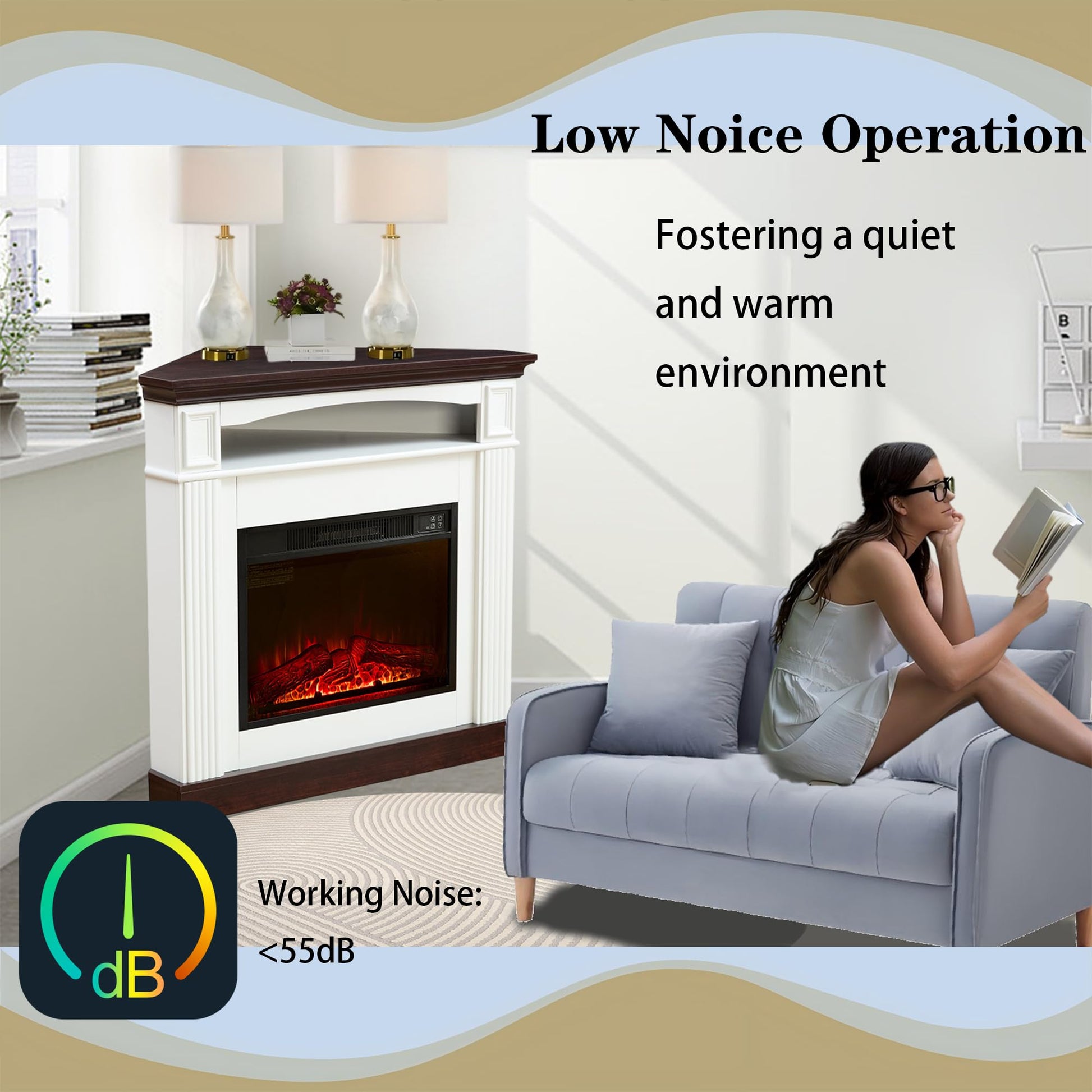 Corner Electric Fireplace with Mantel, Space Heaters for Indoor Use with 23" Fireplace Insert, Adjustable Flame, Remote Control, Electric Fireplaces for Livingroom, Bedroom,Studyroom (White-Corner)