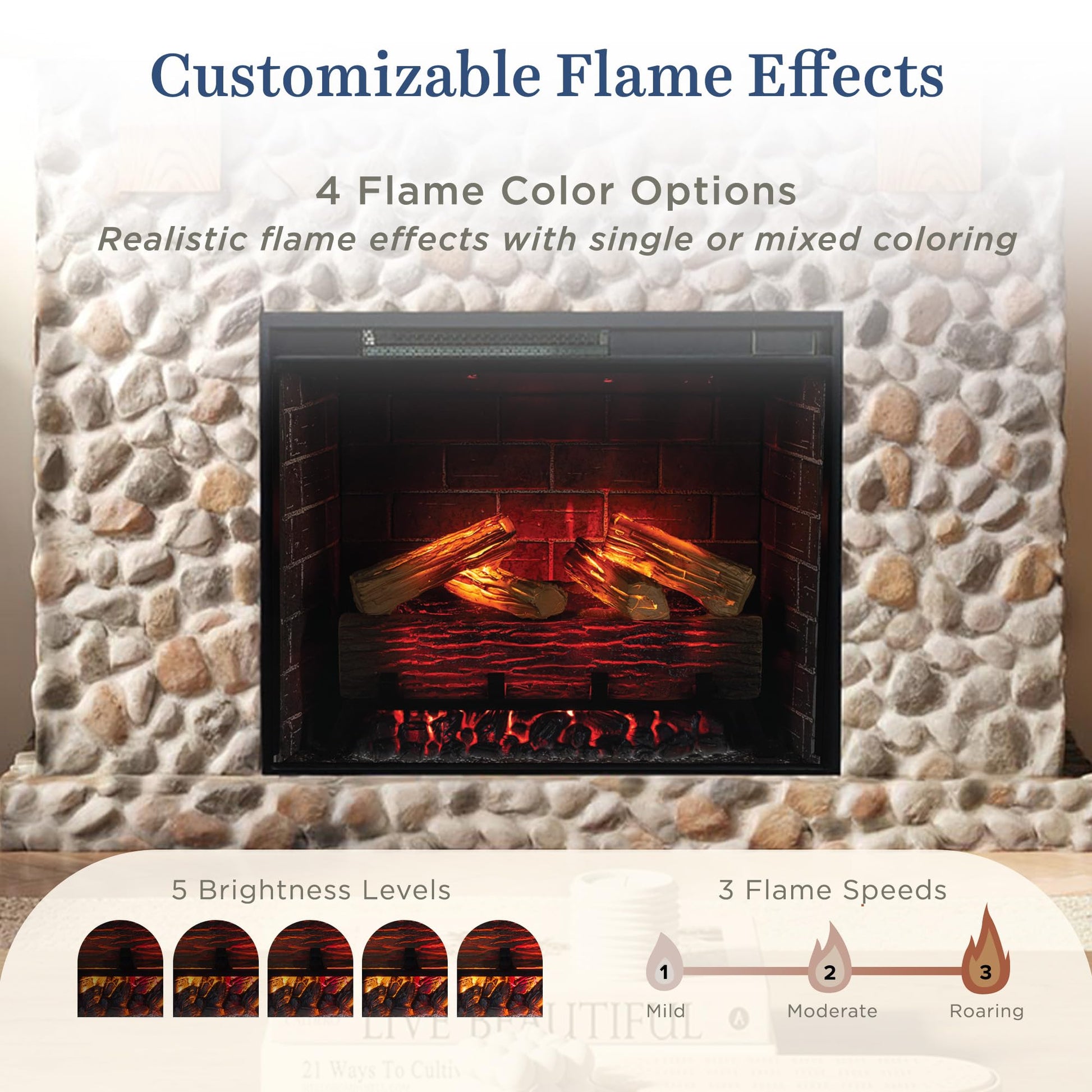 - π₯ REALISTIC LOGS AND EMBER BED: The realistic resin logs and glowing ember ashbed offer a cozy, life-like experience. Feel free to set a timer for 1-9 hours of continuous heat, or operate the log set without heat.