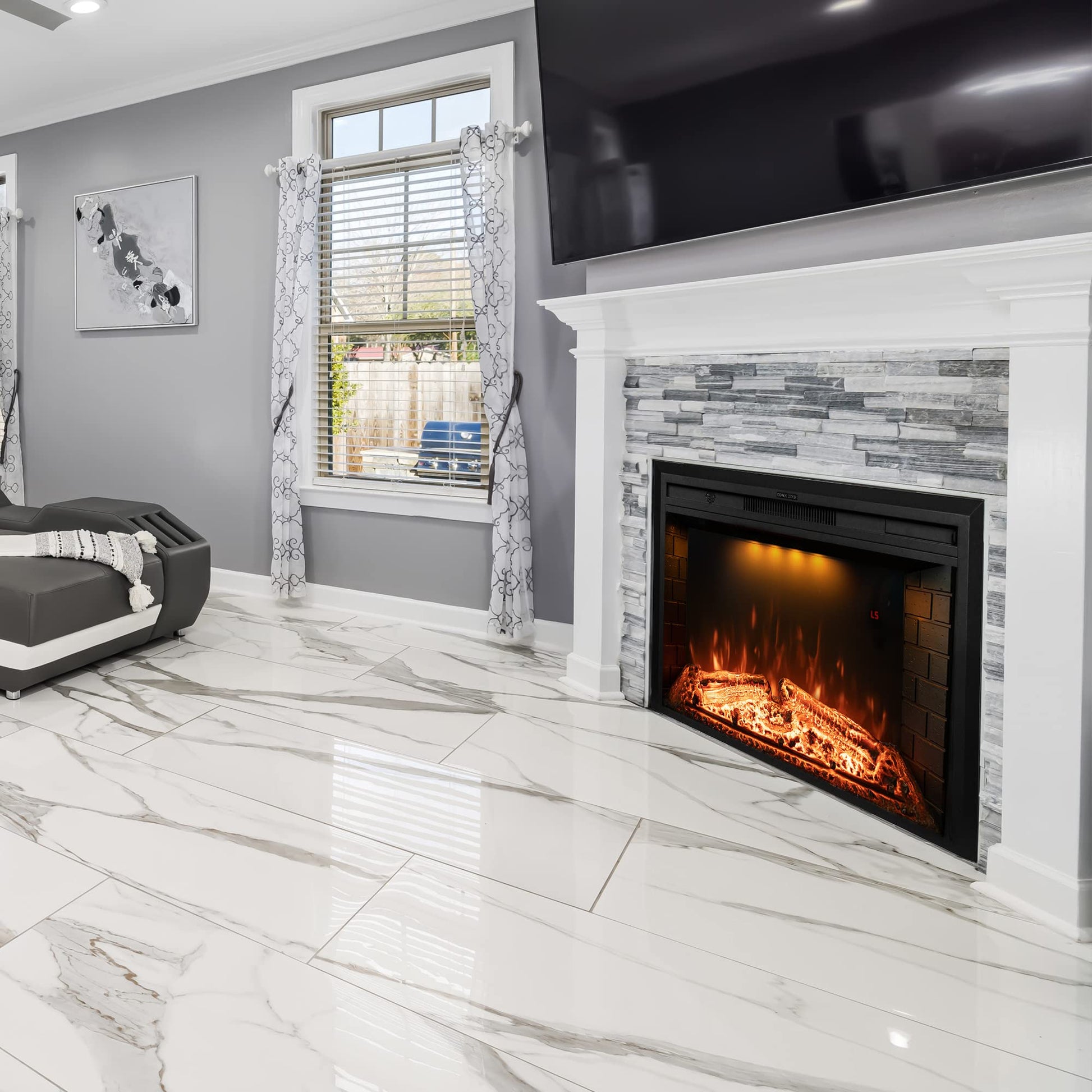 - Insert Installation: This recessed electric fireplace could well match the mantel, TV stand, and existing wall opening or be a replacement heater for the electric fireplace. No assembly and easy installation, plug-in with 6ft power cable and use ONLY 110-120V 15Amp. Kindly refer to the advise opening size:32.6'-32.7'(W) X 20.0'-20.1'(H) X 8.86'-9.06'(D). Please check the Instruction&Manual PDF as attached below.