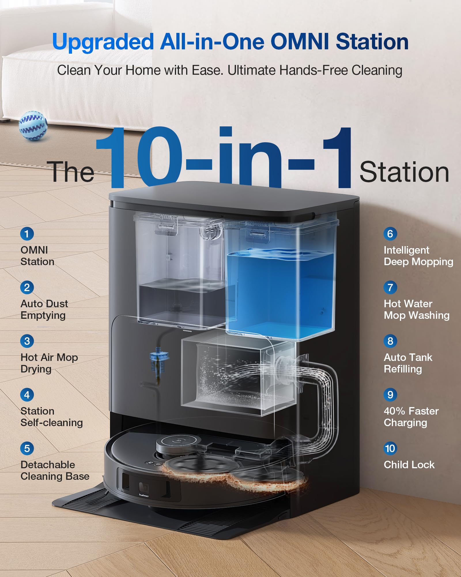- All-in-One OMNI Station - The all-in-one OMNI station supports 158℉ hot-water mop washing, self-emptying, auto water refilling and hot-air drying. This multi-functional station prepares your DEEBOT T30S for any cleaning challenge, embodying the essence of convenience and readiness.