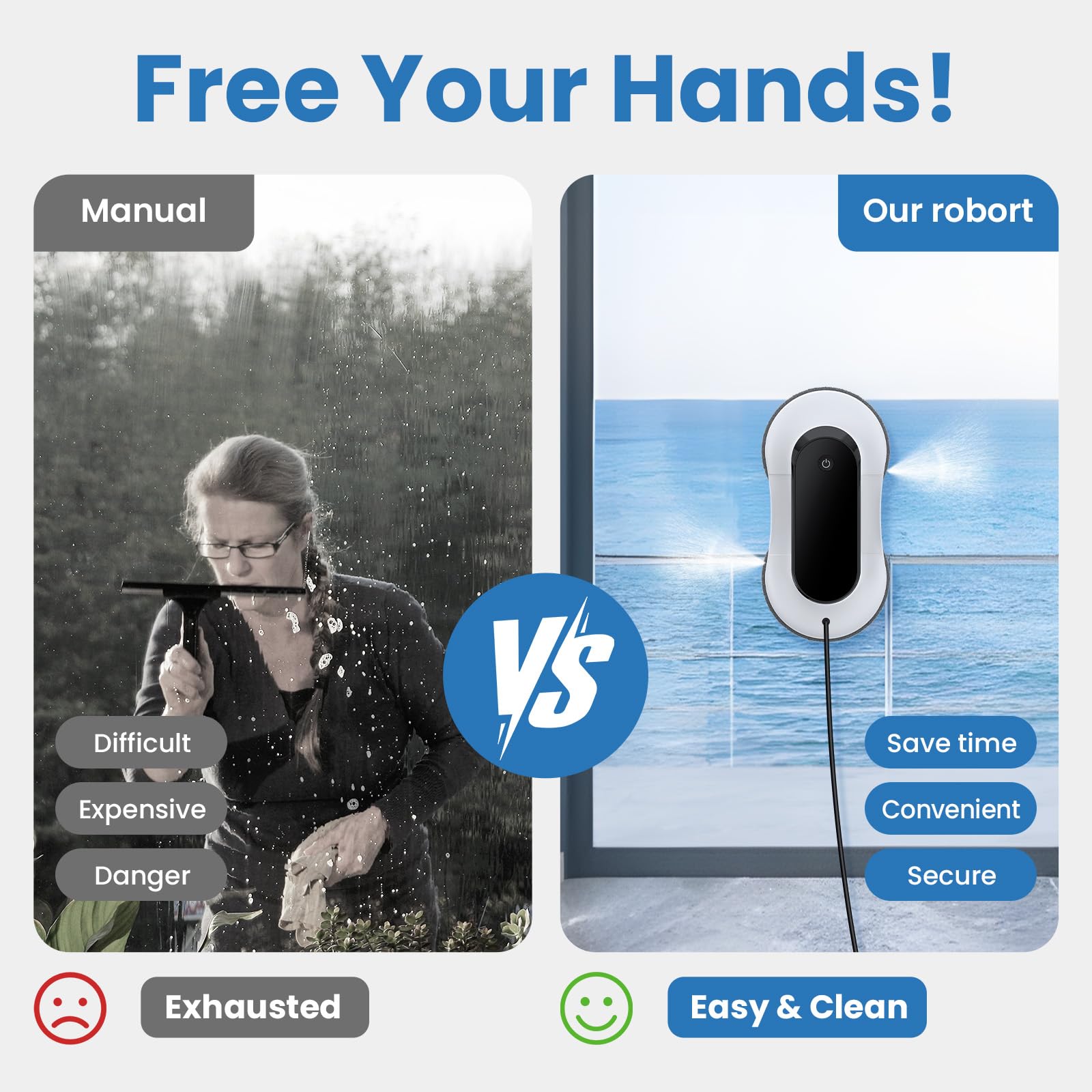 - Powerful Suction, 3000 Pa Strong Vacuum Power: With a powerful suction range of 3000Pa, this window cleaner robot adheres firmly to windows, providing stable cleaning performance without the worry of slippage