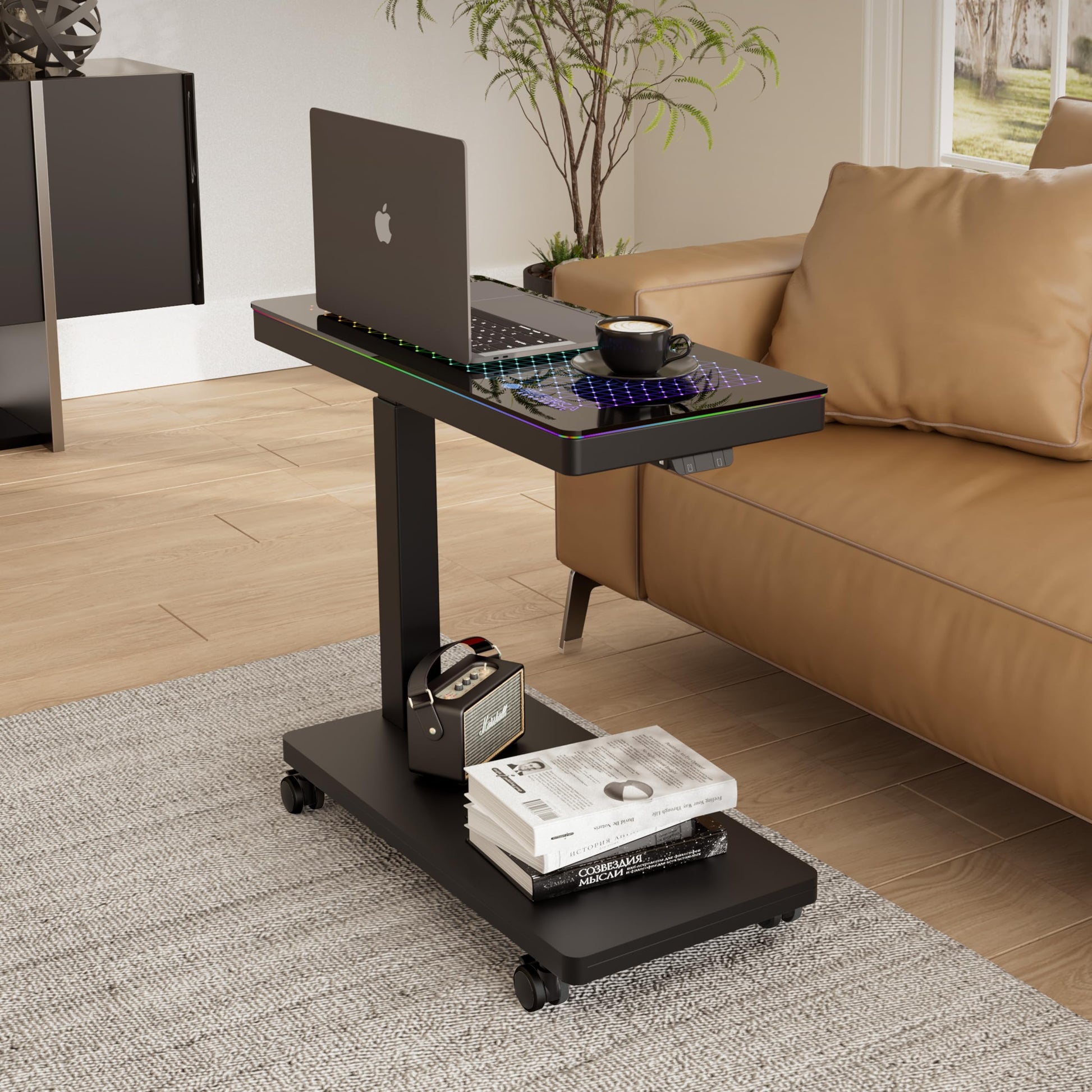 - Aesthetic & Practical Design: The full-panel illuminated structure adds a stylish and modern feel. The CPU stand with lighting can also create an exciting gaming atmosphere. The PC holder's 2-tier design provides enough storage space. The top shelf can store items such as printers, plants, documents, and magazines. Whether it's an office, home, or gaming room, the glass pc cart fits a variety of needs and is applicable in any environment.