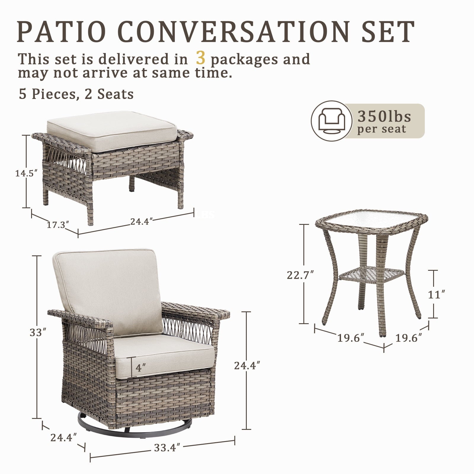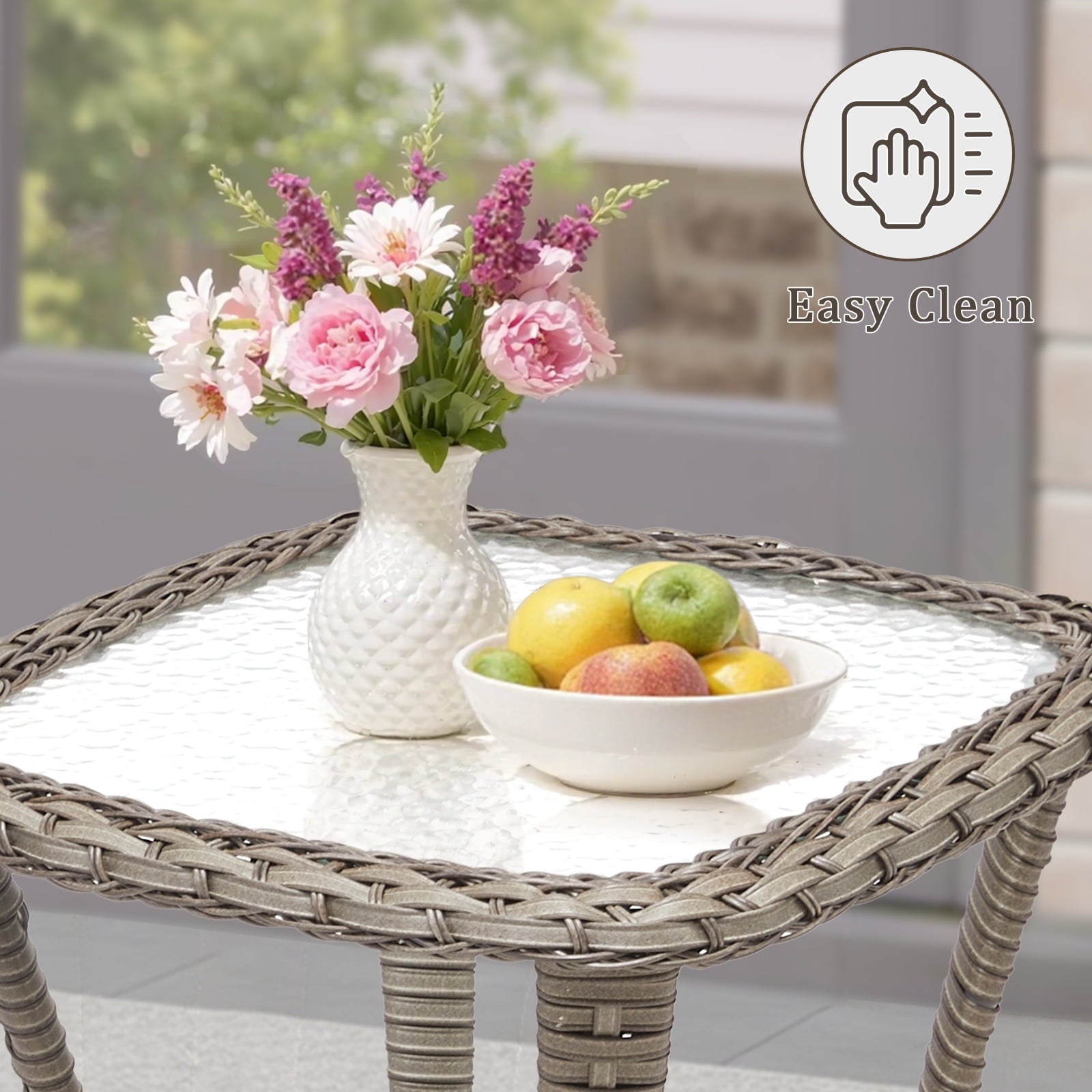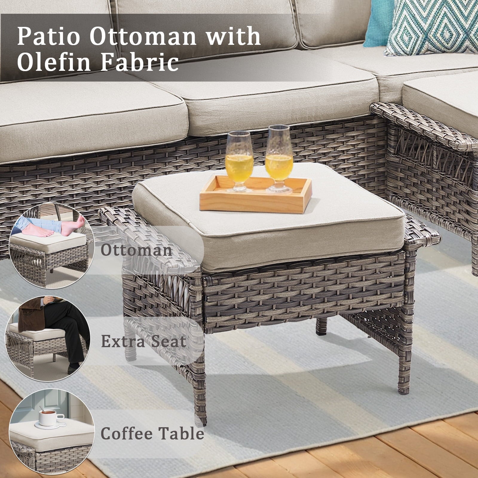 Feishominoo patio furniture sets are crafted with meticulously hand-woven PE wicker with exceptional weatherproofing and waterproofing for easy maintenance. The powder-coated steel frames ensure stability and durability. The ergonomic backrests, wide armrests, and spacious seats provide you with a comfortable seating experience. Each cushion with a 4-inch high-density 28D foam core provides pillow-like softness and responsive cushioning. This outdoor wicker furniture set is perfect for your outdoor space, like your patios, gardens, backyards, decks, porches, and so on.