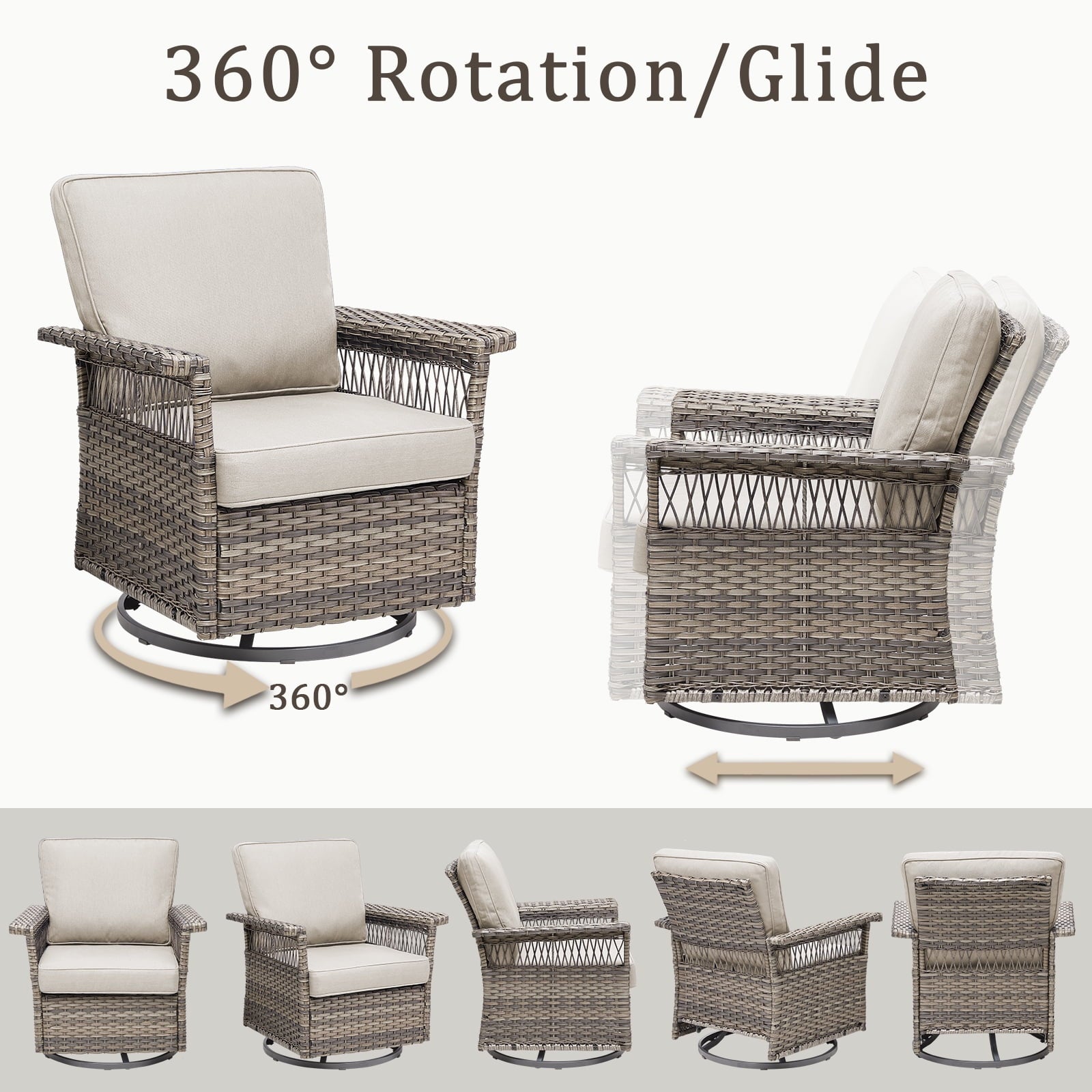 Feishominhoo Outdoor Swivel Rocker Patio Chairs,Gray Wicker Rocking Glider Chairs Set of 2 with Ottomans, Side Table and Beige Cushions Outdoor Patio Furniture for Balcony Porch Deck
