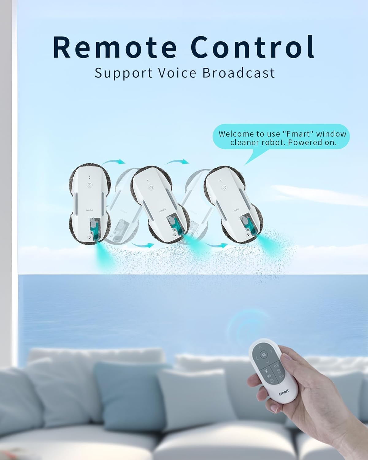 - Easy Cleaning: With up to 3800Pa of suction power, the window cleaner robot intelligently adjusts its suction based on the glass's dirt level for deep and efficient cleaning. It frees your hands, making window cleaning easy, safe, and time-saving
