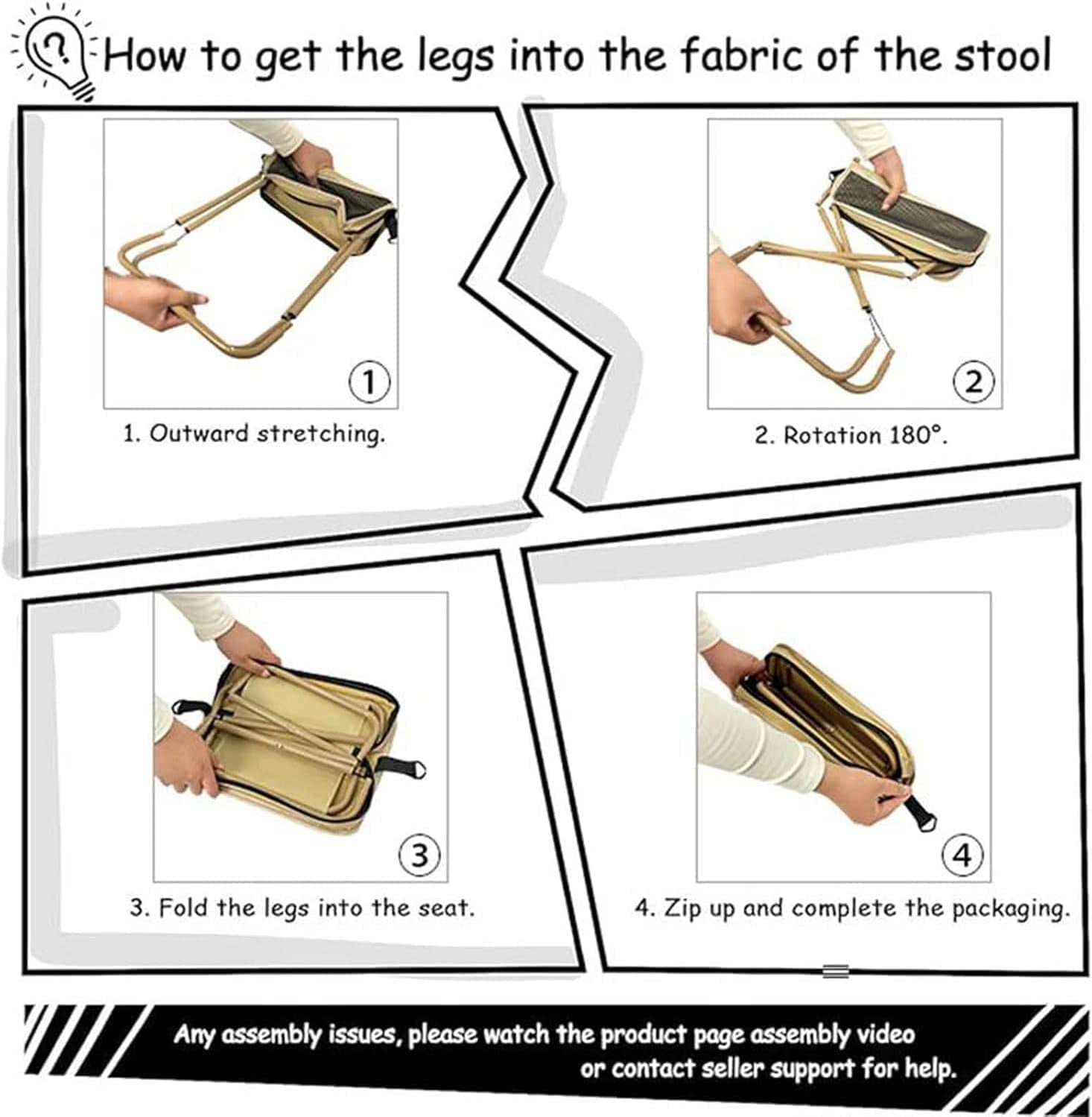 Foldable Backpack Stool, Mountaineering and Hiking Portable Stool, Pocket Handbag Stools, Lightweight Outdoor Seat with Adjustable Strap, Outdoor Zipper Pack Folding Chair for Travel Fishing